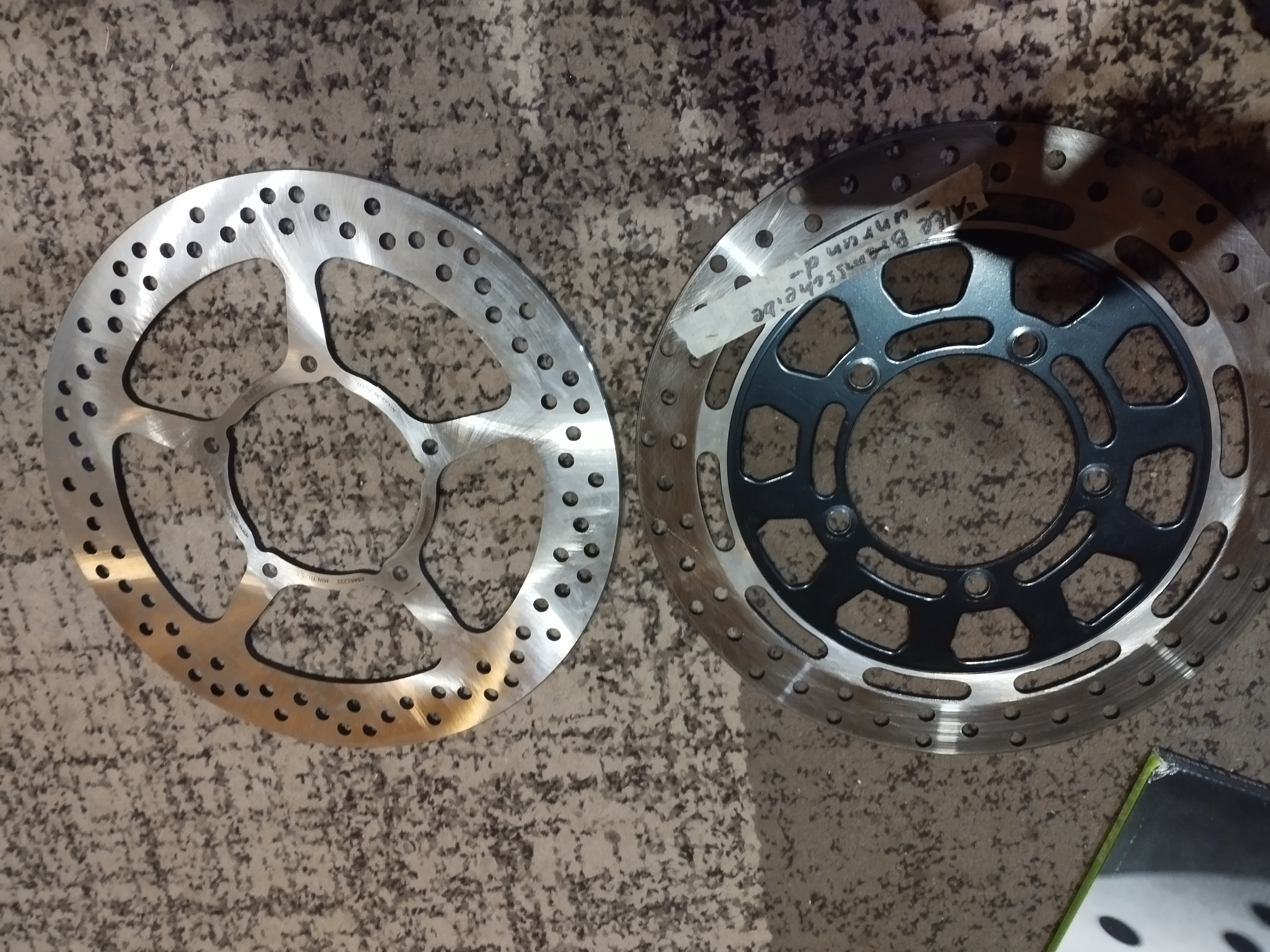 So, heute habe ich das schöne trockene Wetter genutzt um draußen unterm Vordach an meiner Odin auch mal die vorderen Bremsscheiben auszutauschen.