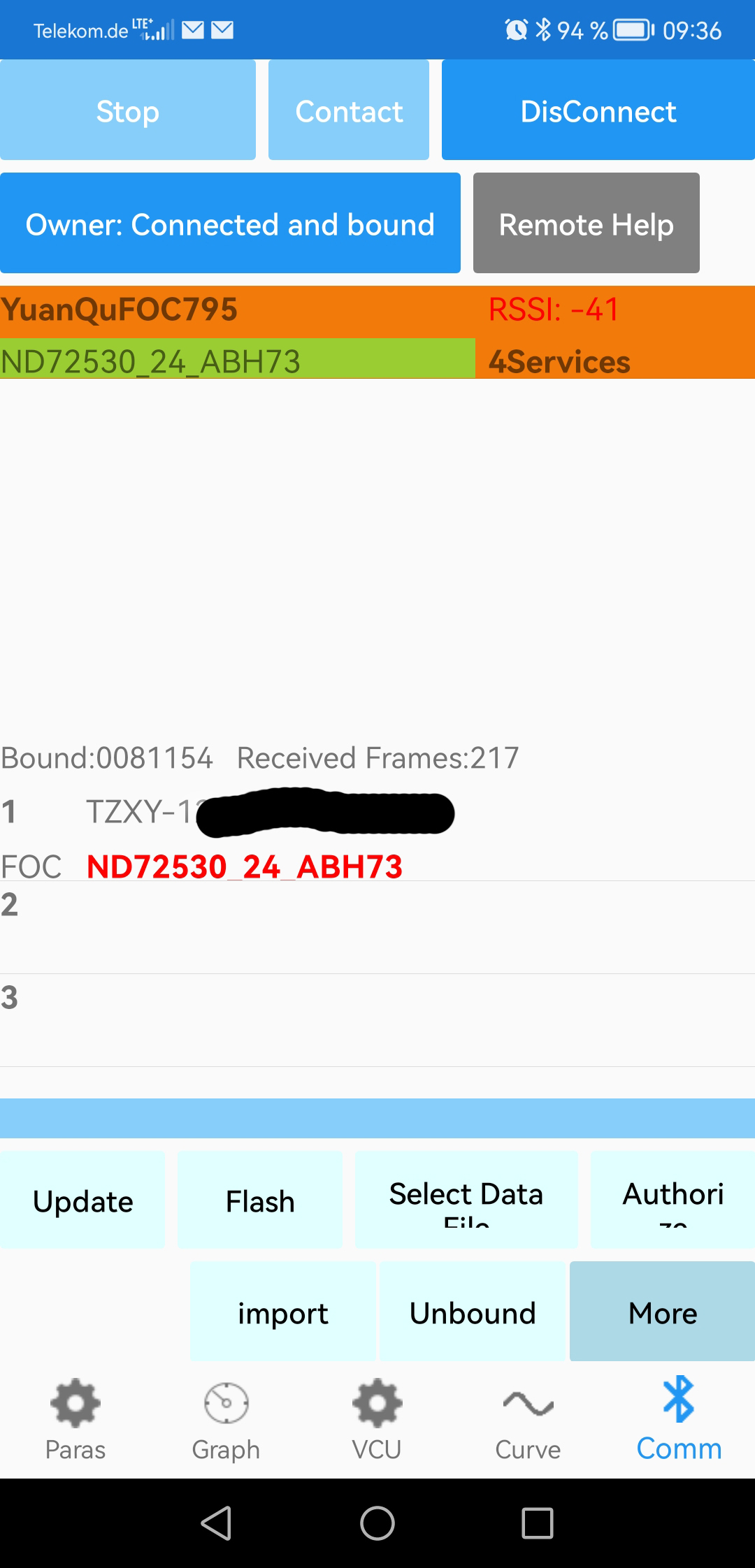 Gegenüber meinen vorherigen Versuchen (nach Mail an die conversion.nagara@gmail.com) kam dann die Bestätigung mit: "Bound Controller SN:TZXY-.........." und der Controller hat auch gleich 1x gepiept.