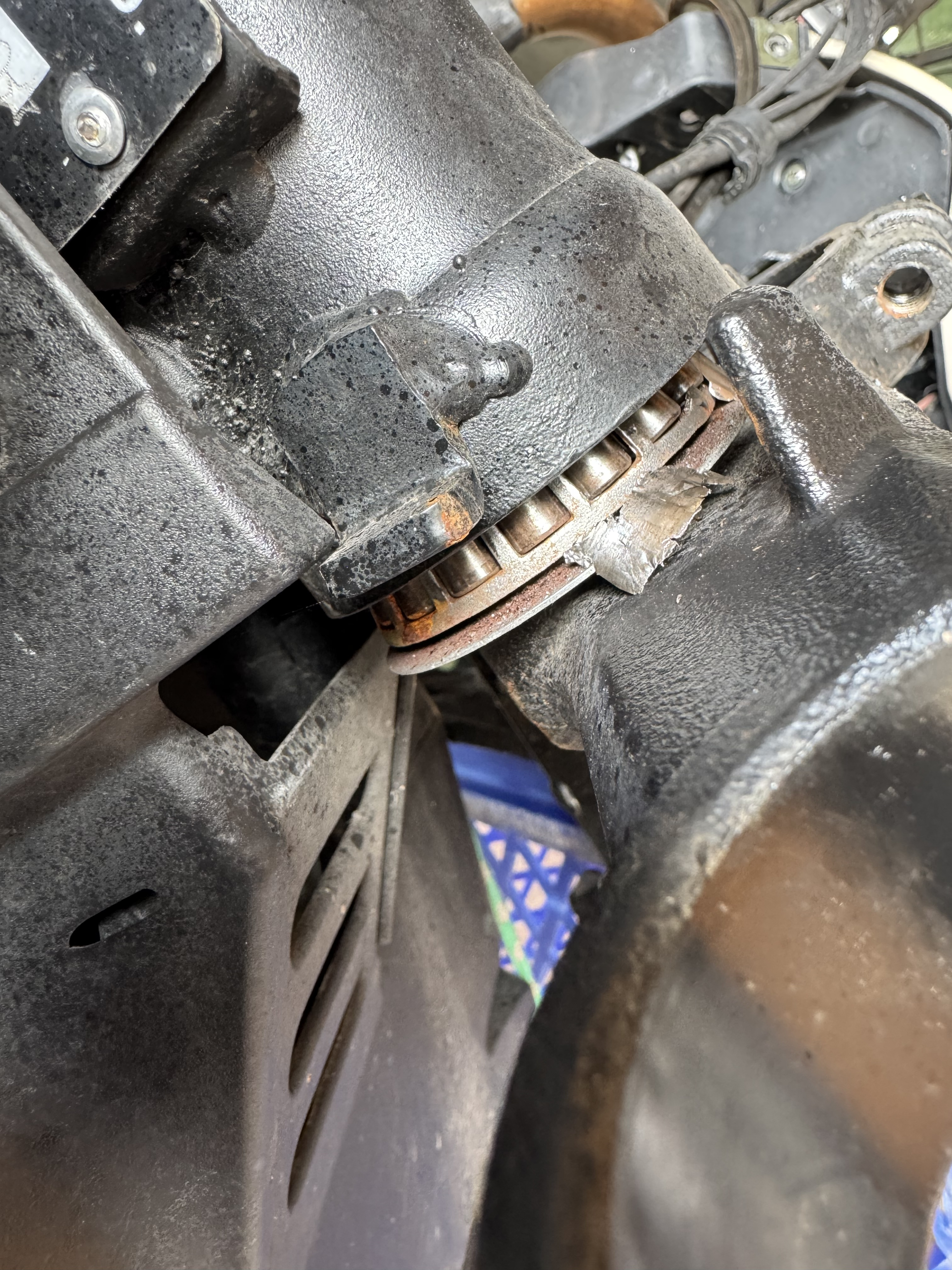 An dem oberen Lager waren Rückstände von Fett zu erkennen, das untere Lager allerdings war komplett trocken. Da wurde wohl bei der Montage nicht sehr sorgfältig gearbeitet.