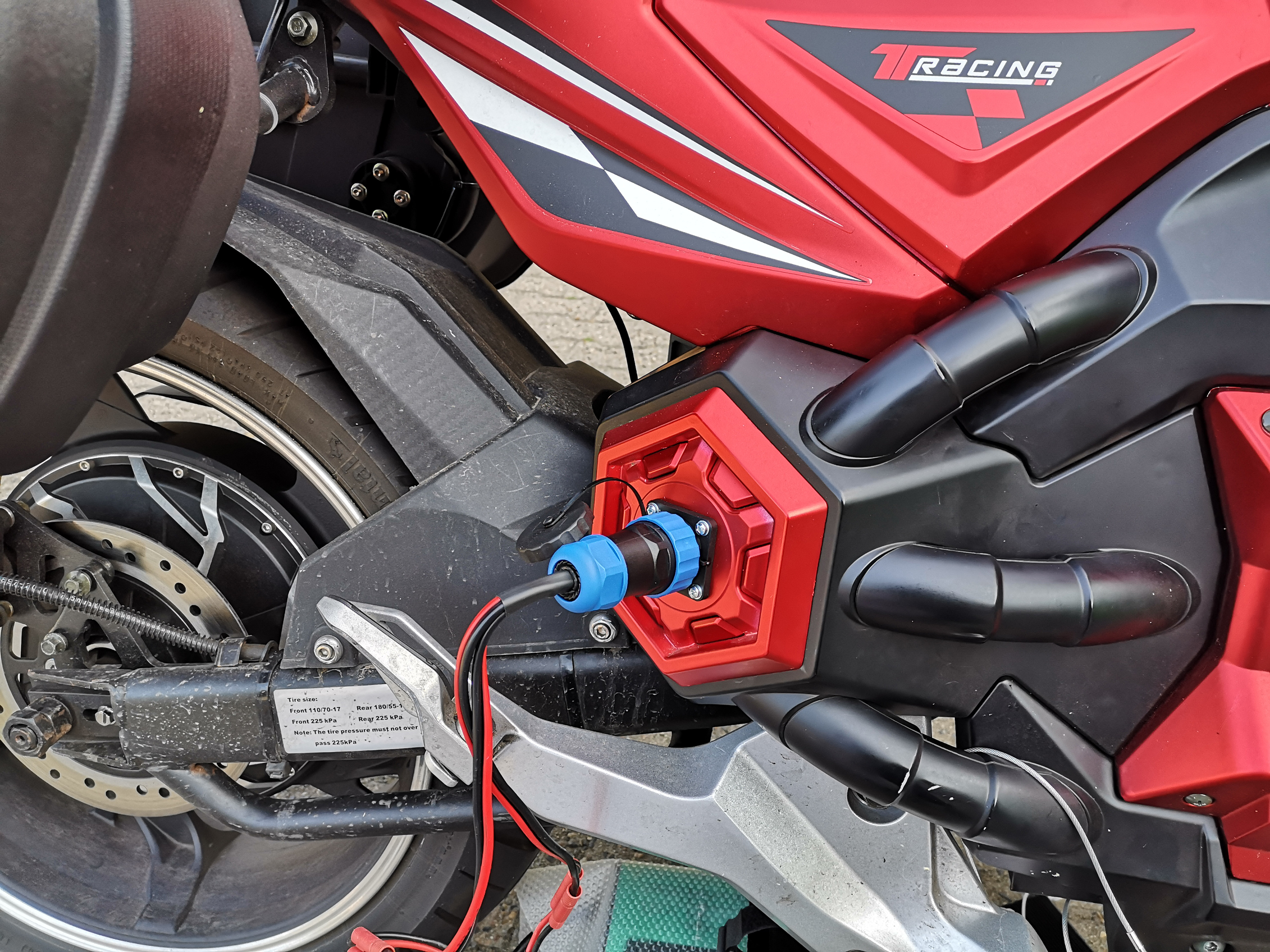 Aber den Steckern traue ich keine 40A zu. Für den 10A Lader ist das ok, aber für mehr würde ich entweder eine Buchse für einen Chogori-Stecker* (wie bei den Futura-Akkus) einbauen, oder aber so eine SP28 IP68 Buchse (3-Pin, die ist wasserdicht und hält 45A Dauerstrom aus):