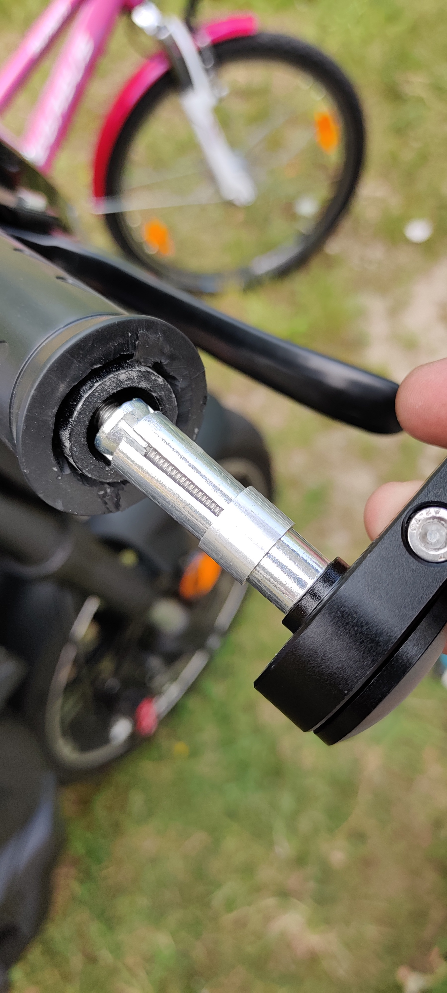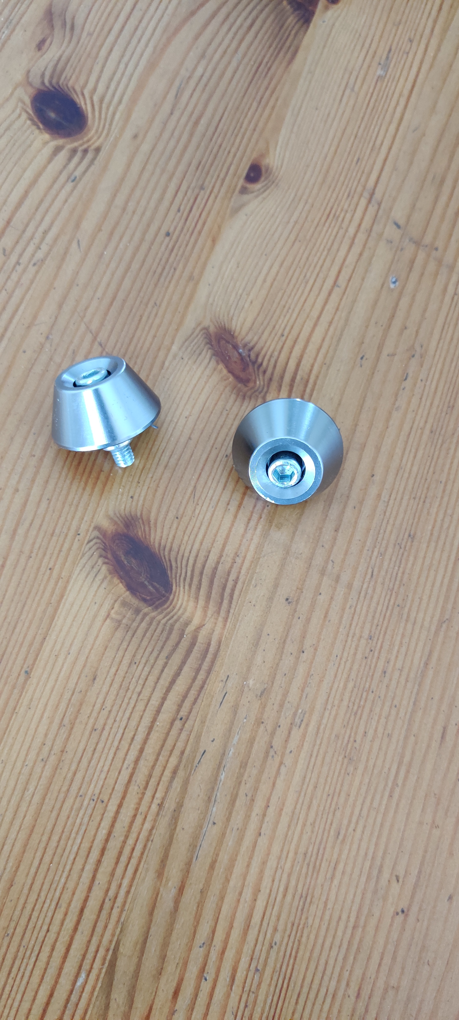 Die Endkappen sind spannenderweise nur in den gummierten Griff eingearbeitet. Auch wenn außen eine Schraube zu erkennen ist. Dahinter sitzt nur eine Mutter, die wiederum die Endkappe mit dem Gummi fixiert. Möchte man den Griff vom Lenker lösen kann man also einfach "drehen und ziehen".