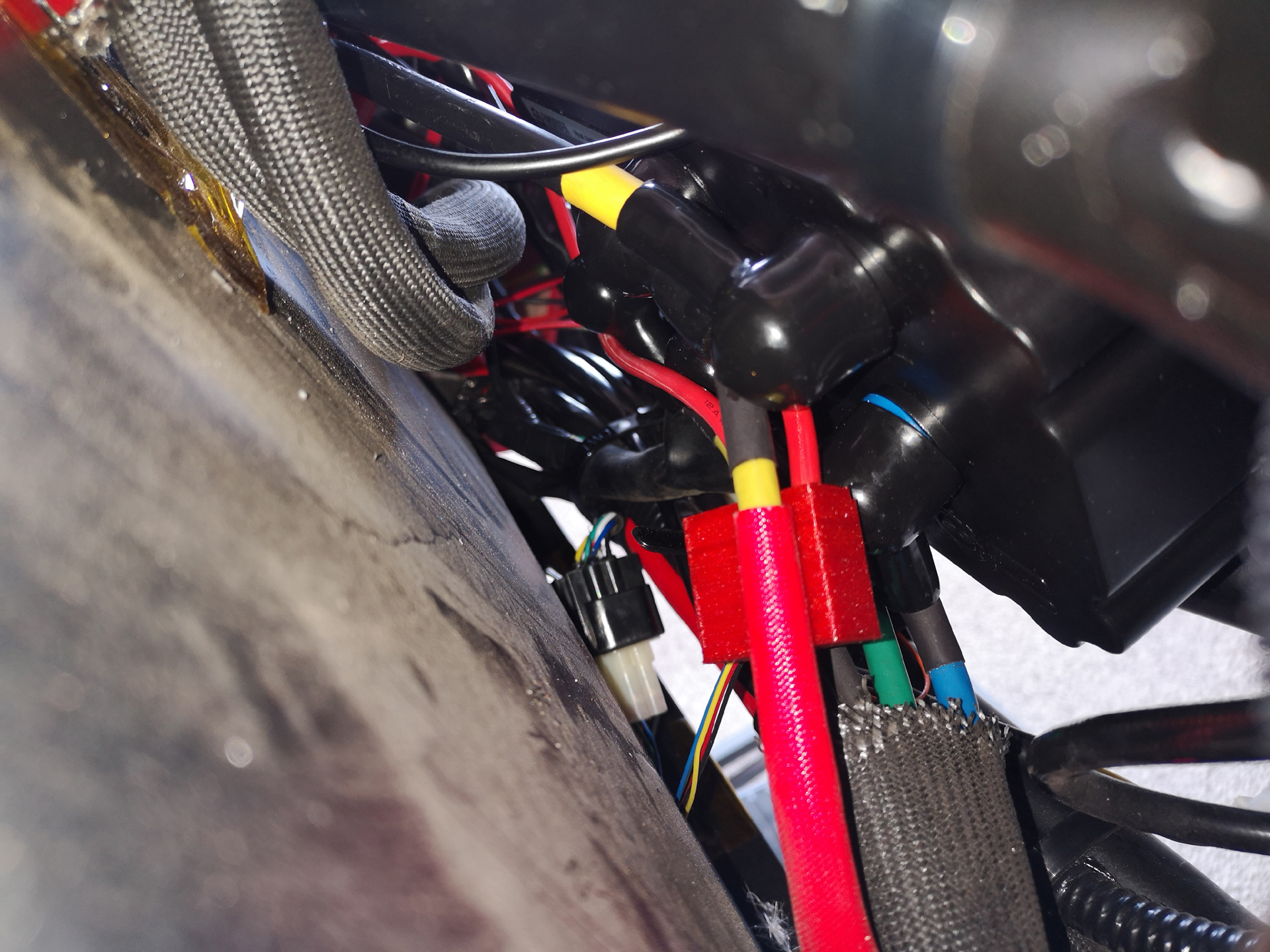 Weiterhin wurde der "Ladeanschluss" vom Fast-Charging Stecker am Akku direkt auf die Plus- und Minuspole am Controller umgeroutet. Das ist problemlos machbar, da bei meinem Akku ohnehin intern der Fast-Charging Anschluss 1:1 mit den Polen verbunden ist.