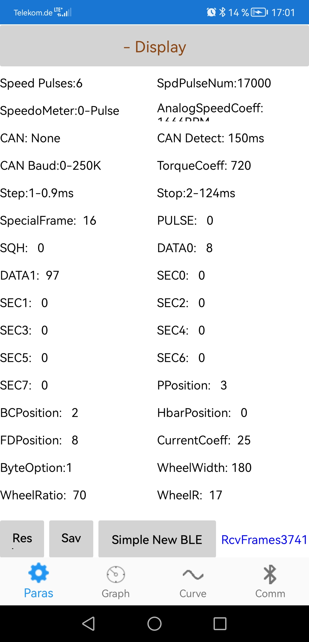 Als nächstes habe ich dann die Parameter von DavidSt einprogrammiert, welche er mir netterweise nochmal aktualisiert zugeschickt hat.