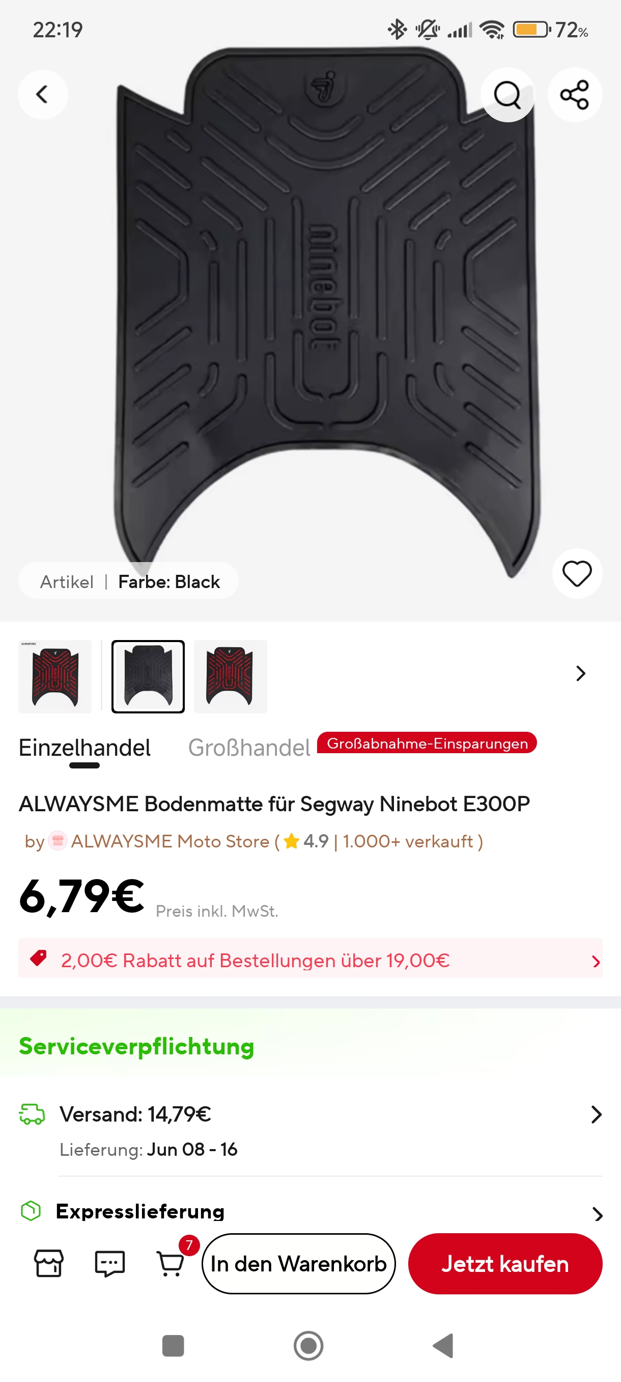 Da meine Schuhe aber öfters recht dreckig sind, lege ich darauf die original Ninebot Matte