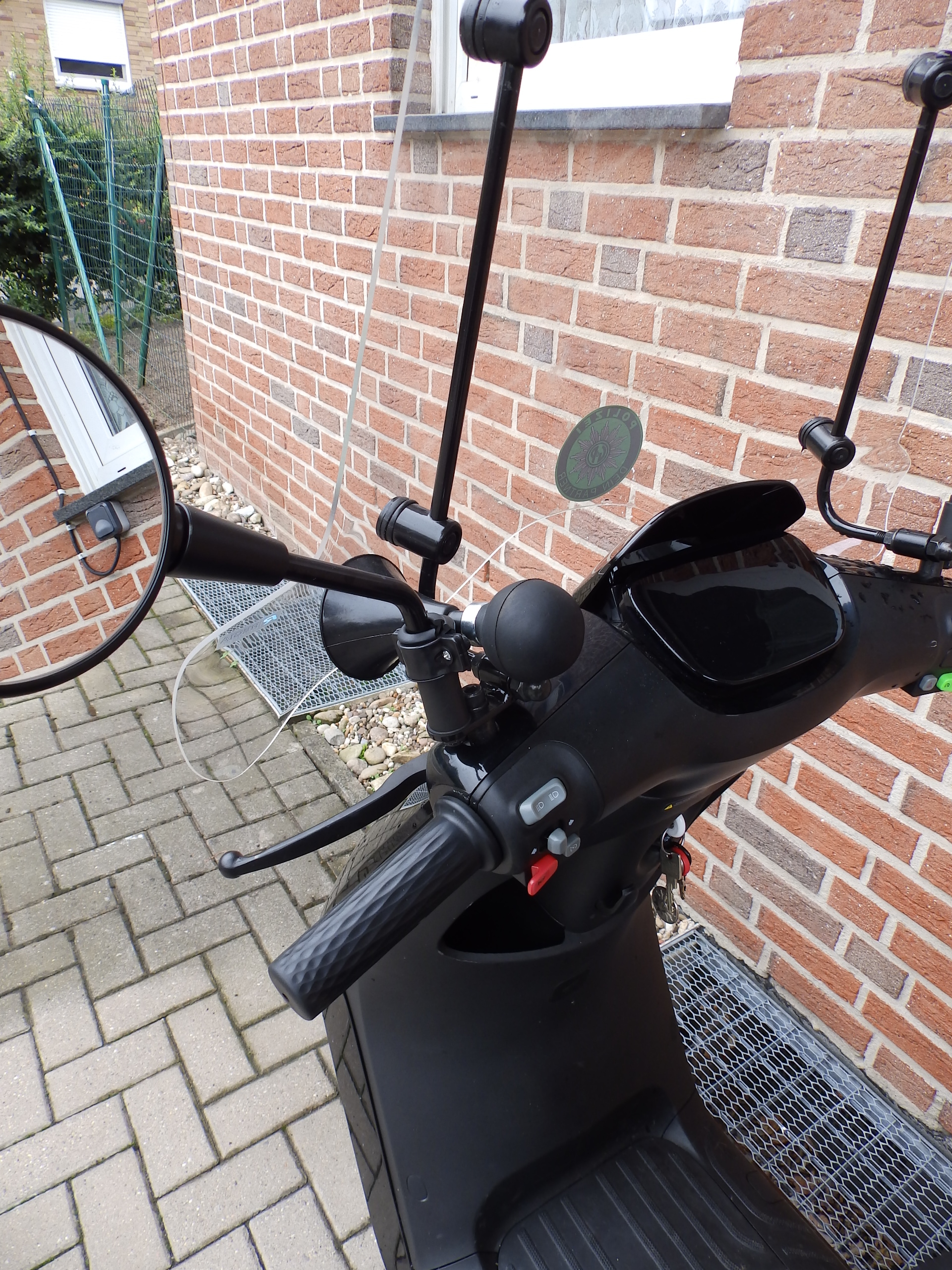 Die Diebstah-Sicherung mit einem Drahtseil finde ich übrigens sehr gut, danke für den Tip! Bei mir auf dem Parkplatz passt übrigens mein Moorhuhn (oben im Fenster) genau auf, dass niemand an meinen Roller geht :lol: