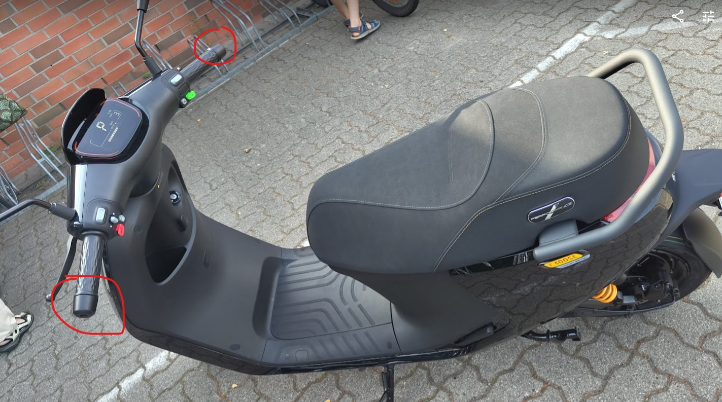 Das sind Lenkerendengewichte am Lenkerende dran, werde ich mir auch holen da manchmal die Hand einschläft beim fahren dagegen helfen sie auch gut.