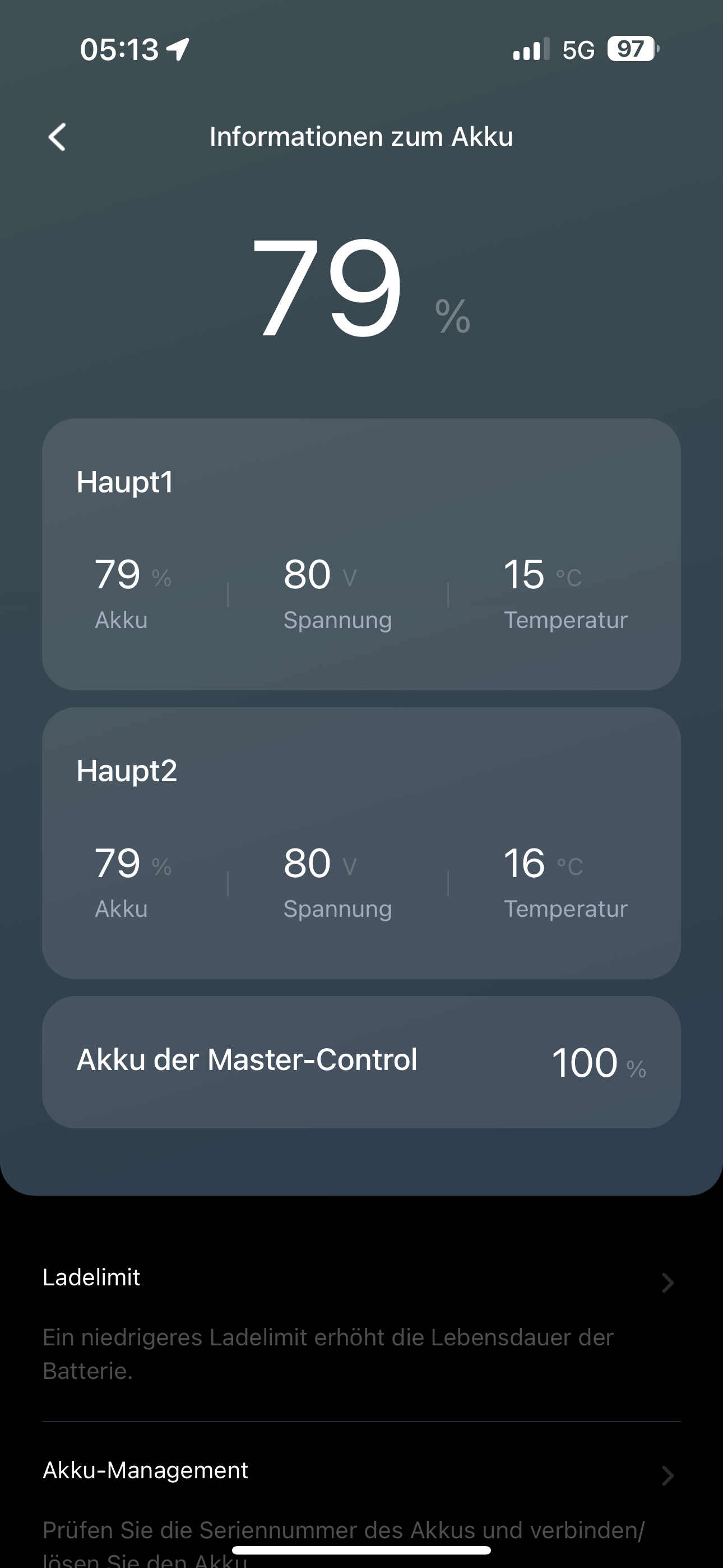 Das GSM Signal kommt nach ca. 10-20 Minuten nachdem alle Hauptakkus vom Roller getrennt wurden. Die Standortortung ist ab diesem Zeitpunkt wieder aktuell. Sobald die Hauptakkus wieder angeschlossen werden verliert der Roller die Verbindung, das GSM Symbol ist ausgegraut, eine Ortung ist nicht möglich. Die Ladestandsanzeige funktioniert nur über das Dashboard oder über Bluetooth, jedoch nur eingeschränkt: Die Akkus werden nicht aufgelistet, weitere Informationen wie Volt etc werden nicht angezeigt. Ebenso ist die Einstellung des Ladelimits nicht mehr anwählbar, geschweige denn wird diese Option überhaupt angezeigt. Der Roller ist knapp 800 Tage über meine App angebunden, die Smart Services wurden rechtzeitig bis irgendwann 2027 verlängert. Das Laden extern, sowie intern (bspw. an einer Ladesäule) funktioniert einwandfrei, demnach funktioniert die Kommunikation zwischen Ladegerät und Akku-BMS egal wie geladen wird.
