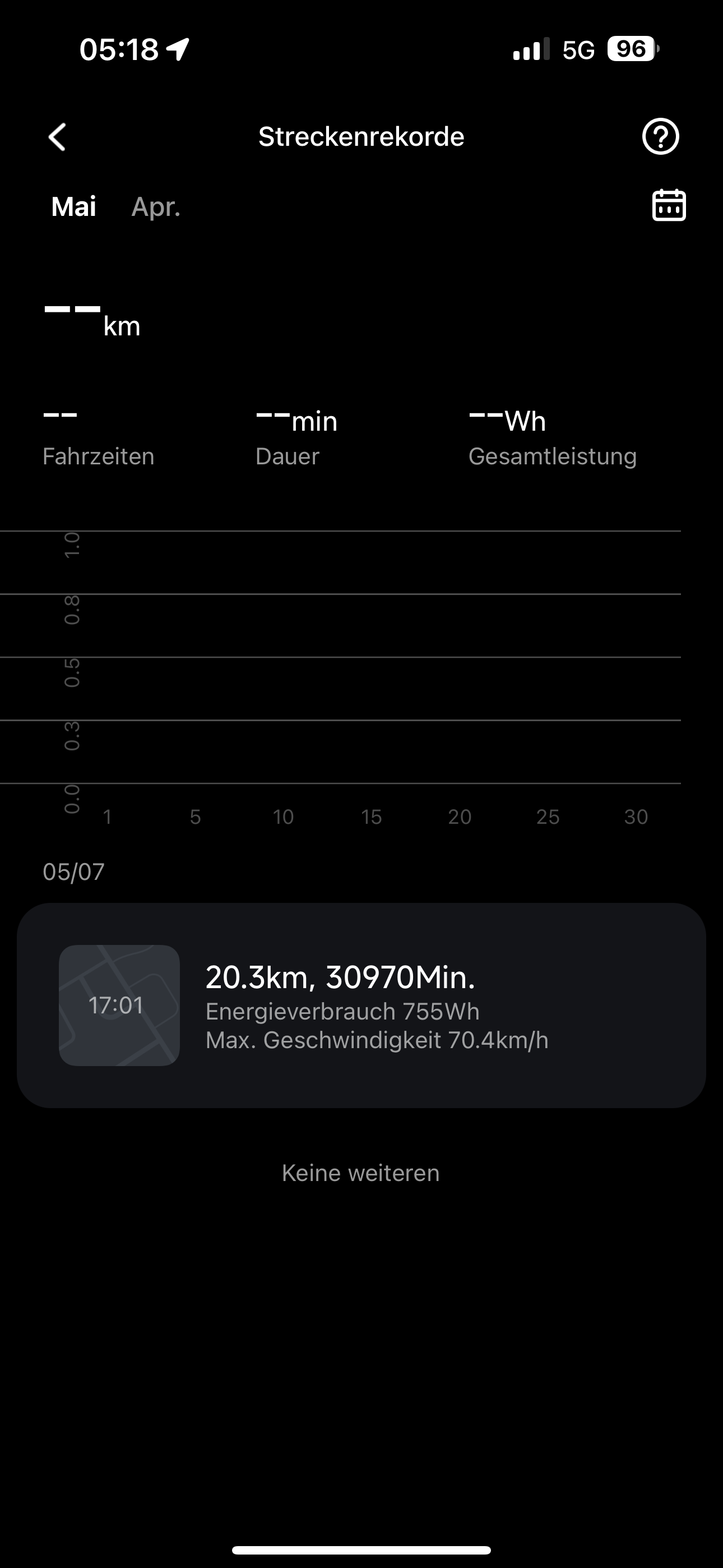 Auch die Akkus werden wieder korrekt angezeigt. Also alles so wie es soll, außer die letzte Fahrt von 20 Km mit über 30 tausend Minuten