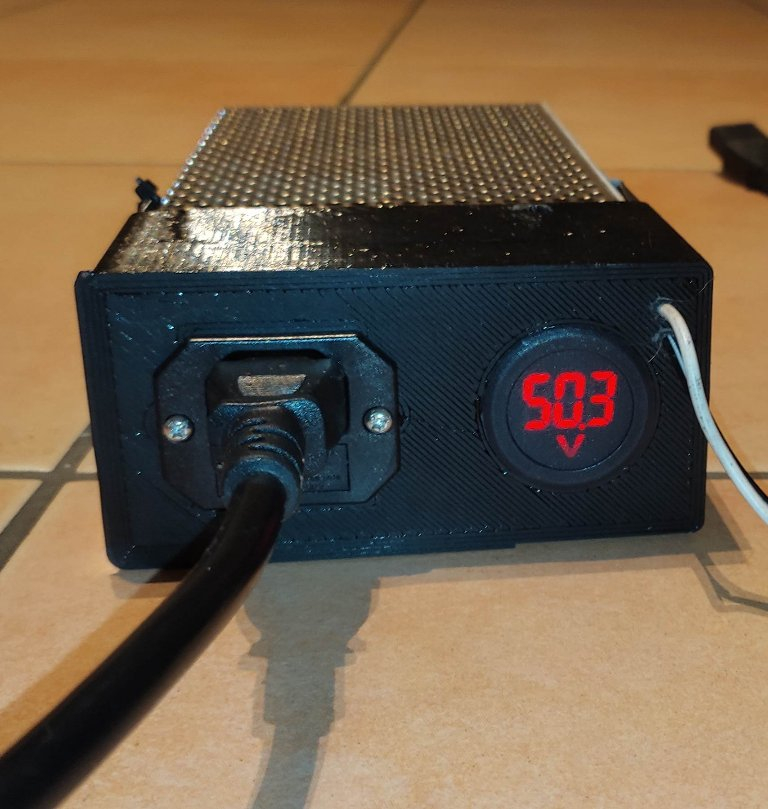 So sieht mein Meanwell Netzteil mittlerweile aus. Ich habe es lange zum Laden eines LiFePo4-Pedelecakkus, dann für einen LiIonAkku genutzt und könnte es jetzt zum sanften lautlosen Laden der Bonfireakkus bis 80% Füllstand (da max 54V bei dieser 48v-Version einstellbar) nutzen.