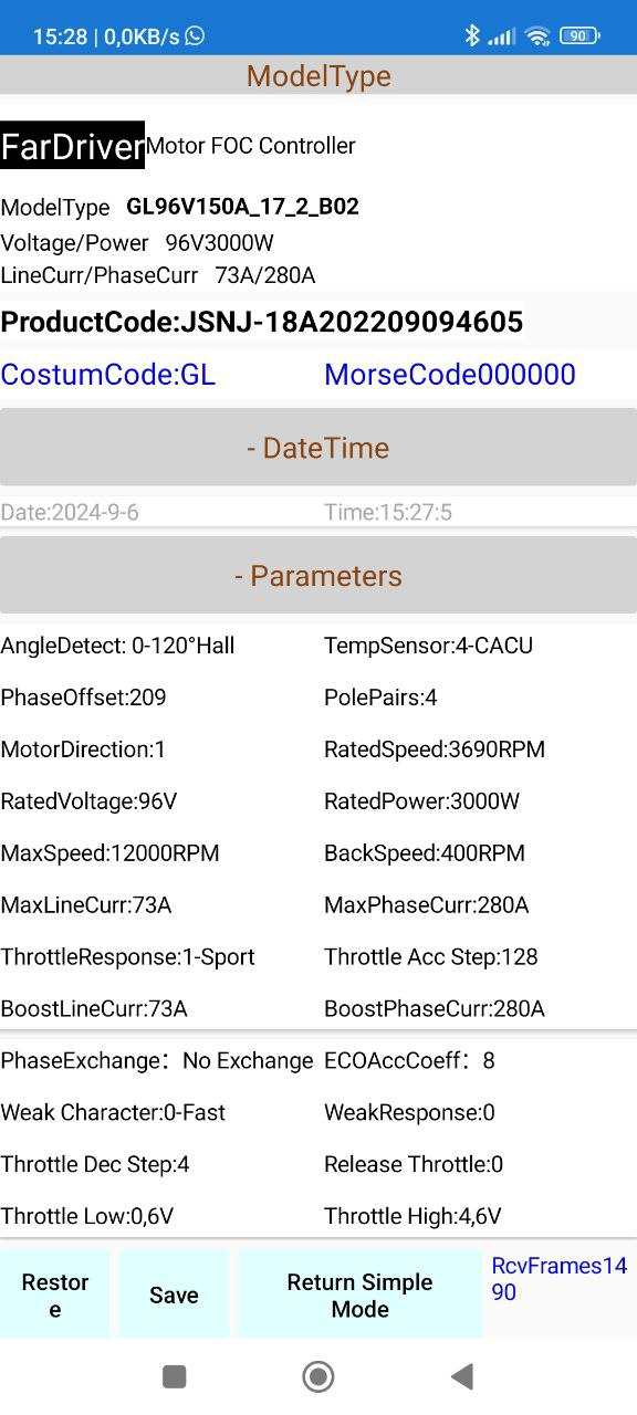 Fotos gibt es leider keine aussagekräftigen. Der Controller ist ziemlich tief verbaut. Anbei das, was ich auf dem Handy habe. Der Blackteaaufkleber sagt etwas von GLS96330C. Sollte das der 96330 von Fardriver sein, wären das 110A LineAmp und 400 Phase, laut manual. Aber laut manual geht der controller nur bis 110V. Auf der Sia-Seite findet man hingegen 115V.