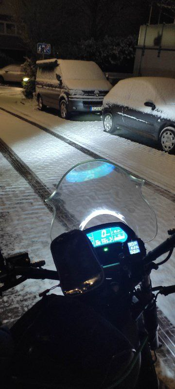 1. 1kwh Rangeextender im Tankrucksack. Alternativ 1,6kw Ladegerät mit typ2-Anschluss. Ladeleistung wird dann auf die 2-4 Akkus aufgeteilt. Hohe Scheibe: hier im Einsatz: Handguards als Wetterschutz: Ist alles nicht sonderlich schön, aber bei dem Wetter sieht mich eh keiner