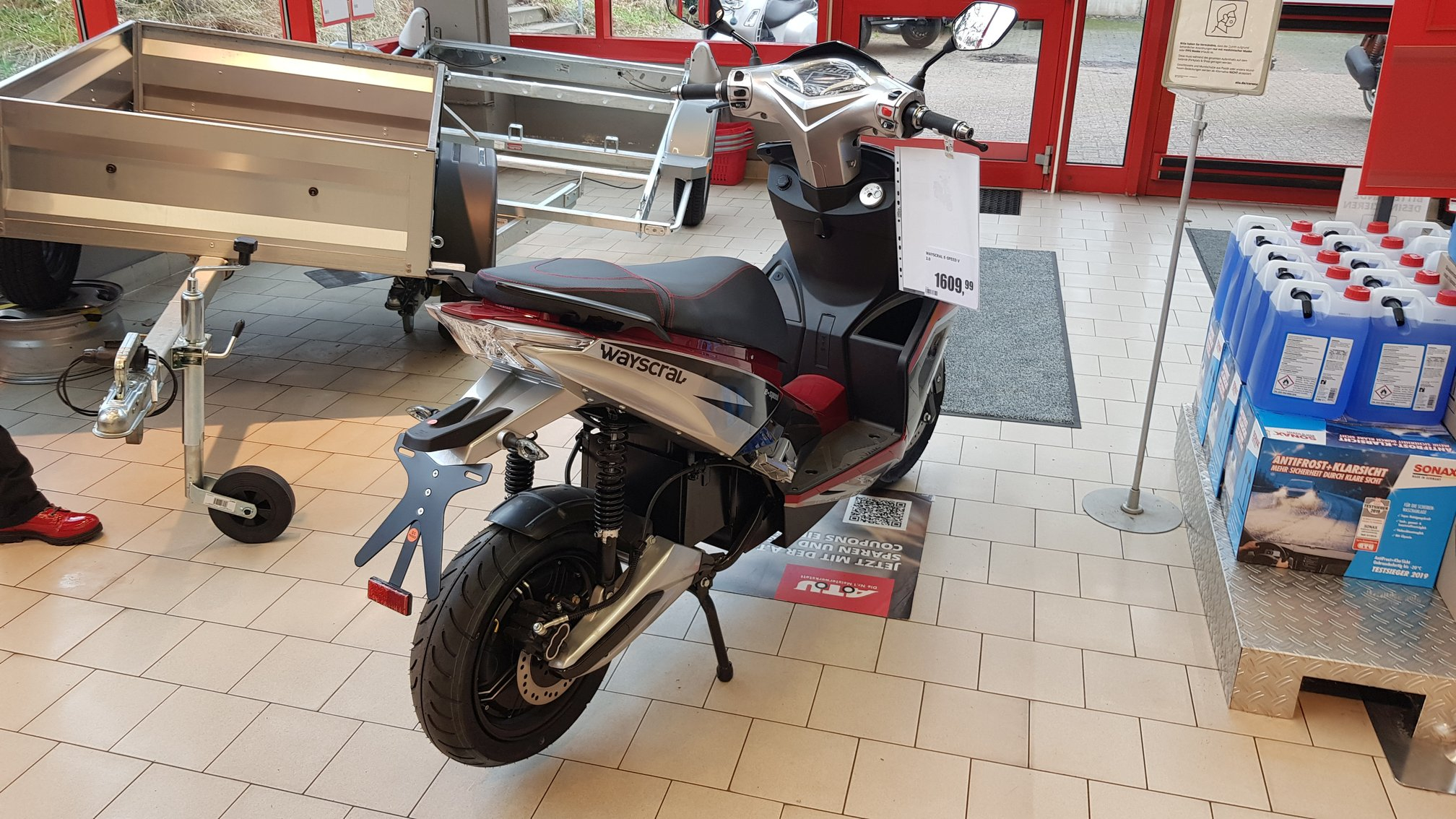 bin gerade auf der Suche nach einem weiteren unvernünftigen Spielzeug und u.a. auch über den Wayscral e-Speed hier im Forum gestolpert. 65km/h klingt als Stadtroller gut. Nach einem ausgiebigen Chat mit einer realen Person auf der ATU-Seite direkt mal nach Hannover bestellt und gestern begutachtet sowie eine Runde gefahren (ging leider nur um das Gebäude, rotes Kennzeichen war nicht vorhanden).