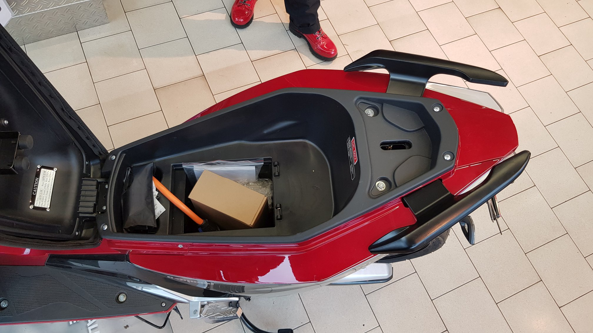 Ein Schönwetterroller - das rechte offene Fach unten lädt zum Regensammeln ein. Hinter der sehr laveden Klappe links befindet sich eine USB-Ladebuchse, wenn ich mich recht erinnere.