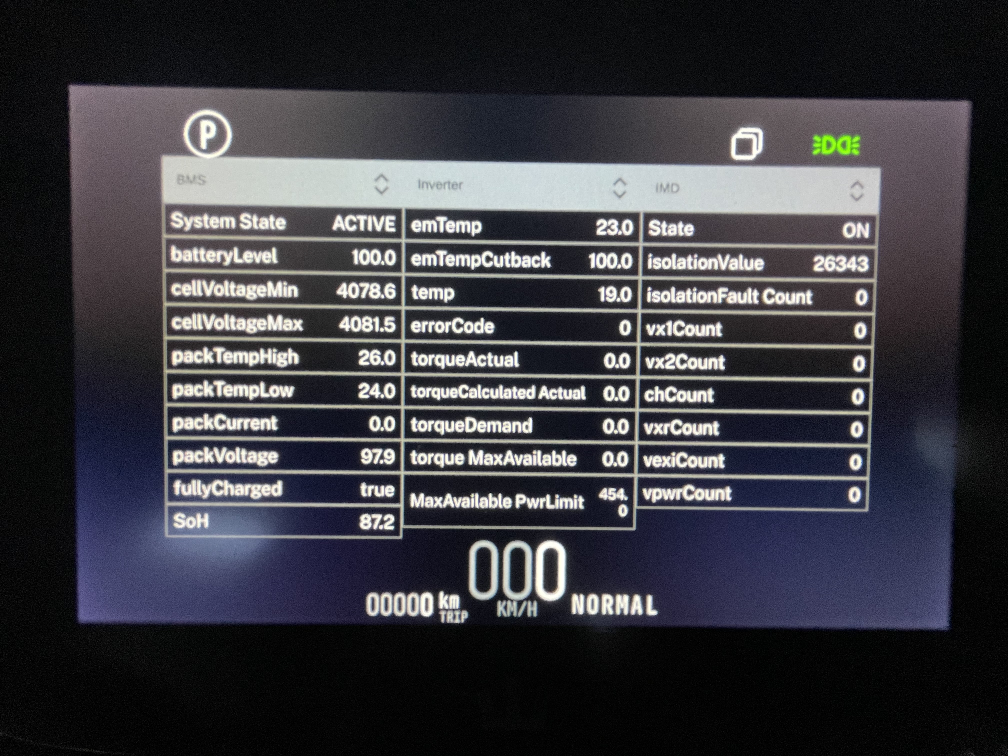 DEV-Menü aufrufen. Du kommst gleich in die Übersicht, die linke Spalte ist interessant. Da steht COS und SOH, aber auch höchste und tiefste Zellspannung. Tiefer kann man leider nicht reingucken.