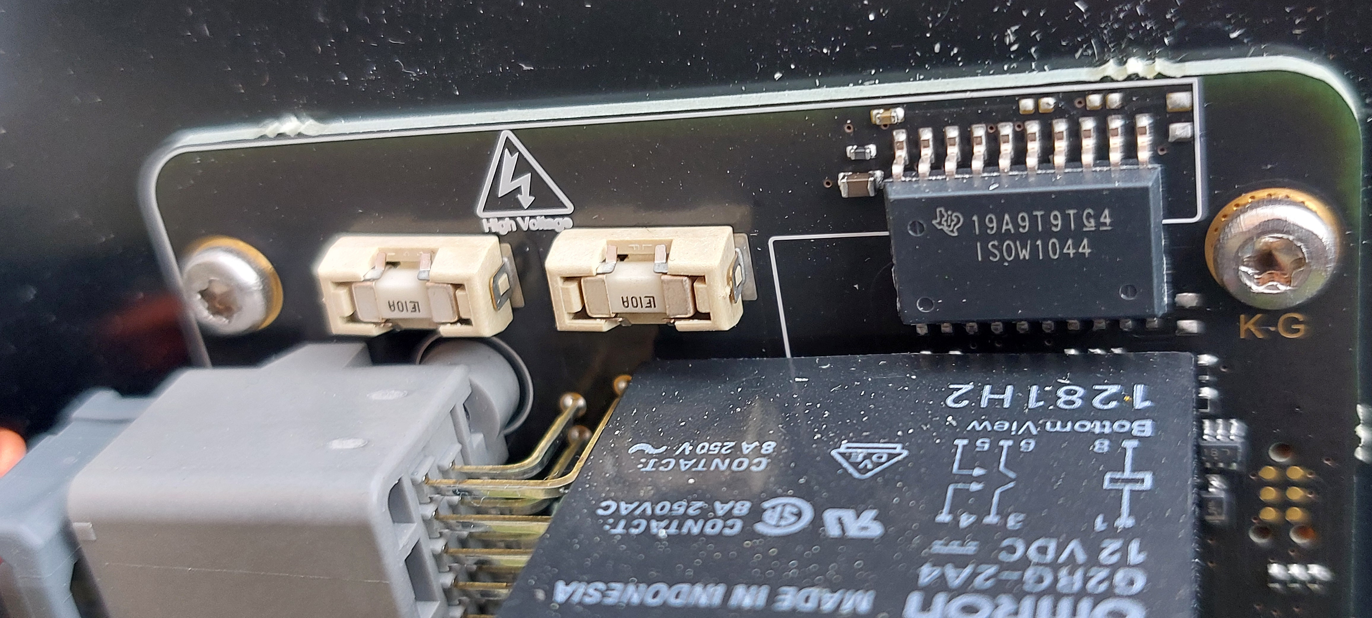 Die drei Sicherungen habe ich nicht alle im Detail nachverfolgt. Eine sitzt in der Leitung des 12V-Ladeanschlusses. Eine sichert die VCU ab. Die andere vermutlich für die 12V-Verbraucher.