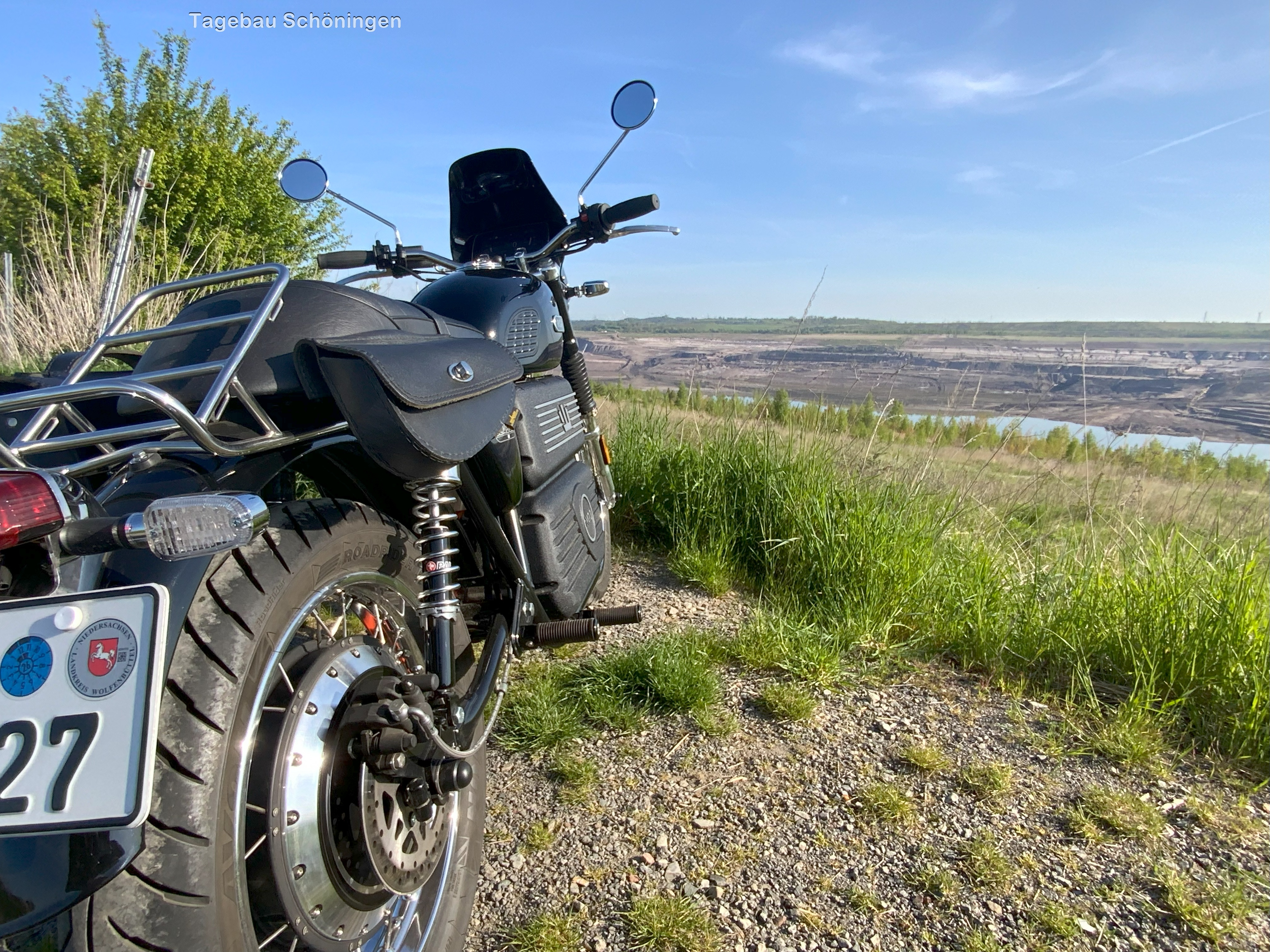 Mit hinteren neuen Federbeinen ausgestattet bin ich heute wieder unterwegs. Und da mir hier in der Gegend der Spitzname "Mopedkantor" anhaftet diesmal mit der RGNT.