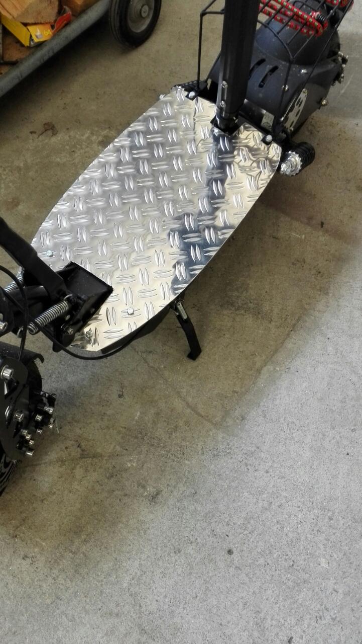 Auch an den Feiertagen bin ich am werkeln. Ich war im Baumarkt und habe mir für kleines Geld ein Stück Riffelblech zugelegt, woraus ich mir ein Trittbrett für meinen Scooter gebaut habe.