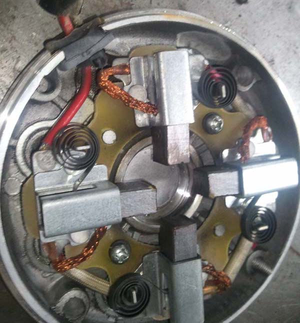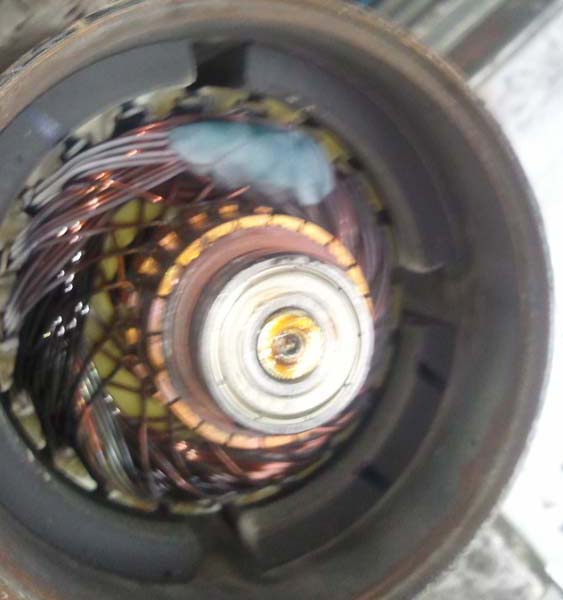 Die Bürsten/Kohlen sehen noch gut aus. Weniger gut gefallen mir jedoch die Wicklungen des Ankers.