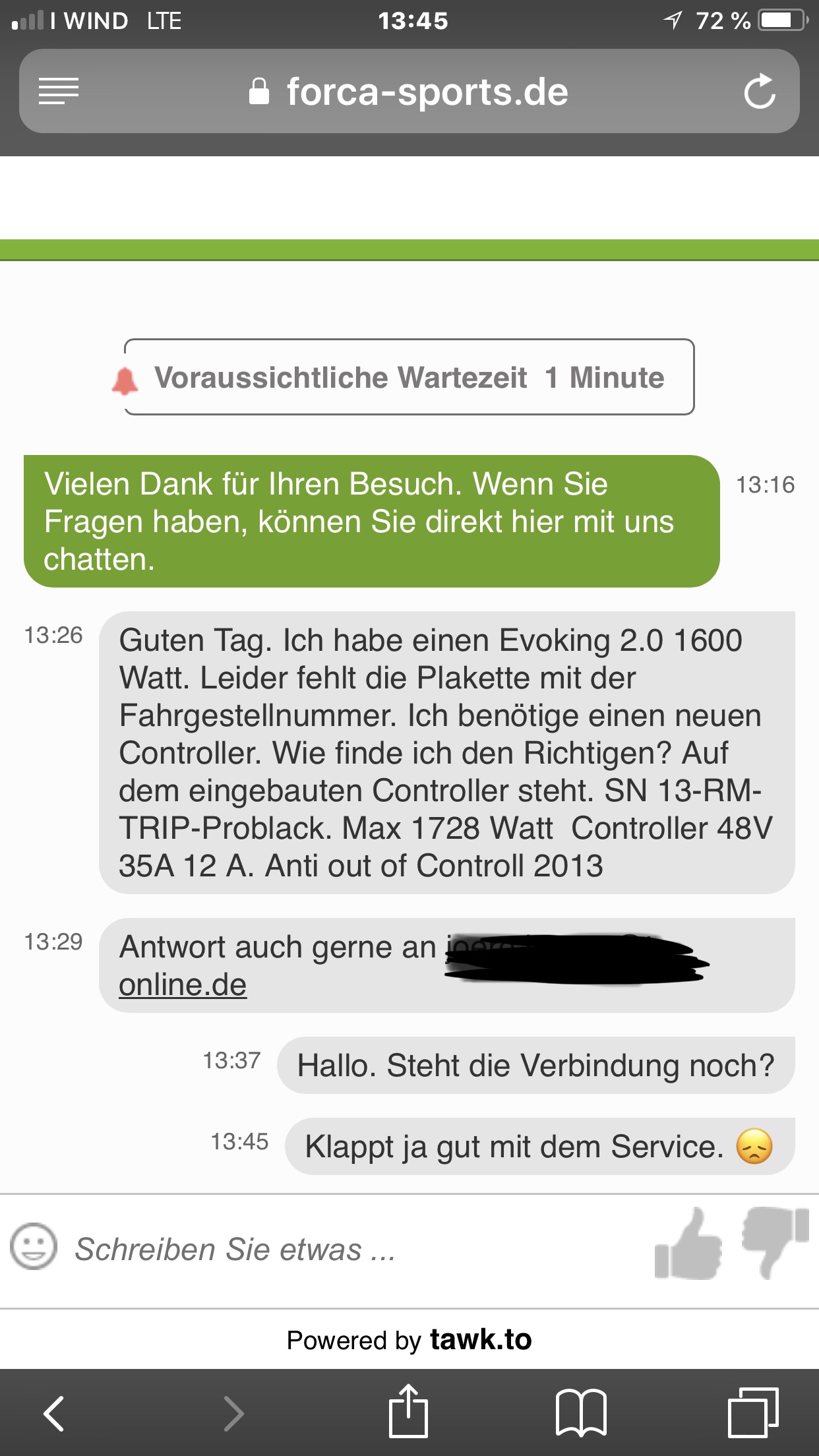 Bei Forca habe ich mit dem Kundenservice auch schon gute Erfahrungen gemacht... kommt nur manchmal drauf an wen man am Telefon hat