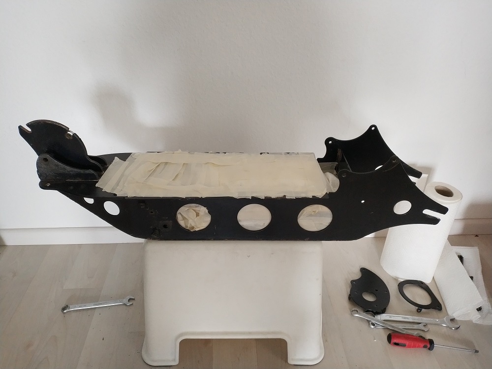 Ursprünglich wollte ich den Rahmen ja nur anschleifen. Leider ist der Rost am Unterboden doch schlimmer als gedacht.