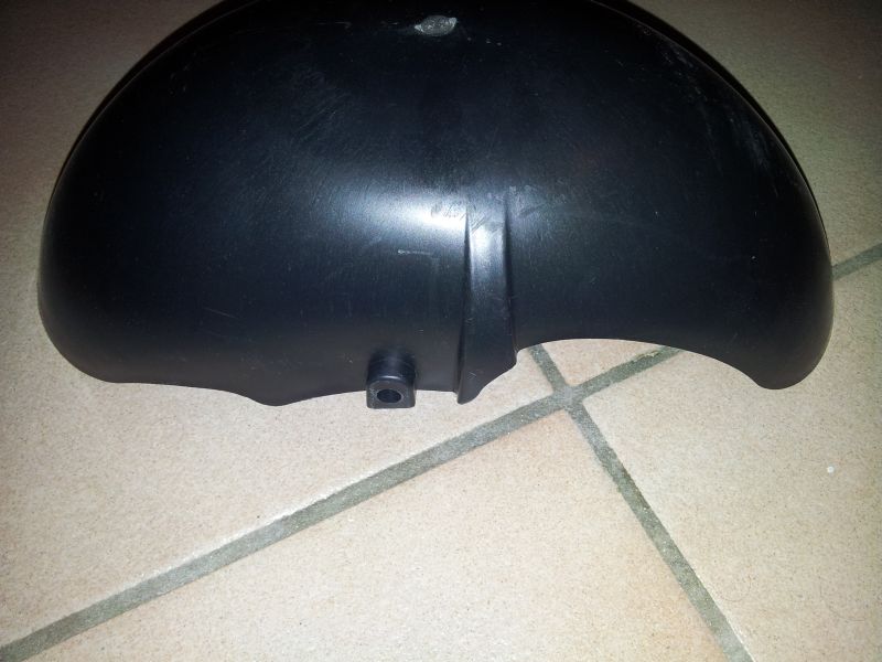 Von der Beschreibung von Harry habe ich mal abgekupfert und mir auch das Schutzblech für die Vorderachse besorgt. Es ist schwarz und aus Kunststoff. gelifert wurde es von S&S und hat 11,90(+4,90 Versand) bei ebay gekostet.