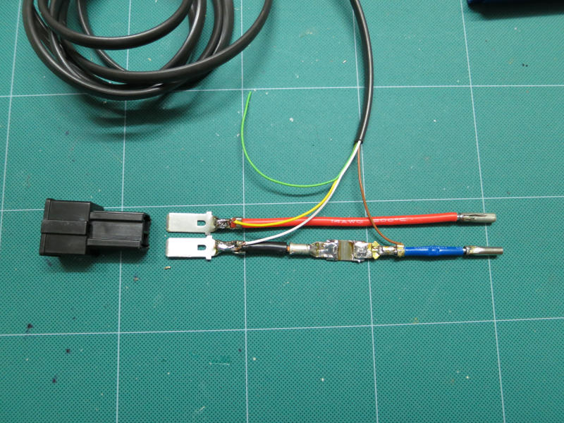 Die Enden der abgeschnittenen Kabel vom Controller abisolieren, und mit der neuen Schaltung verbinden.