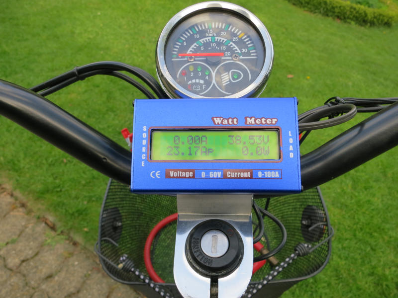 Das Problem bei dem Messgerät ist, dass der Shunt auf der Platine fest aufgelötet ist. Um nicht 2 dicke Litzenkabel mit 6 qmm vom Controller bis zur Lenkstange verlegen zu müssen, muss man also den Shunt auslöten. Die Gewährleistung ist dadurch natürlich futsch, deshalb sollte man vorher alle Funktionen testen.