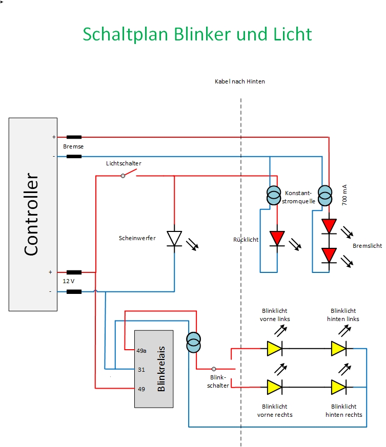 Die mittlere LED ist das Rücklicht und die beiden äußeren LED's das Bremslicht.