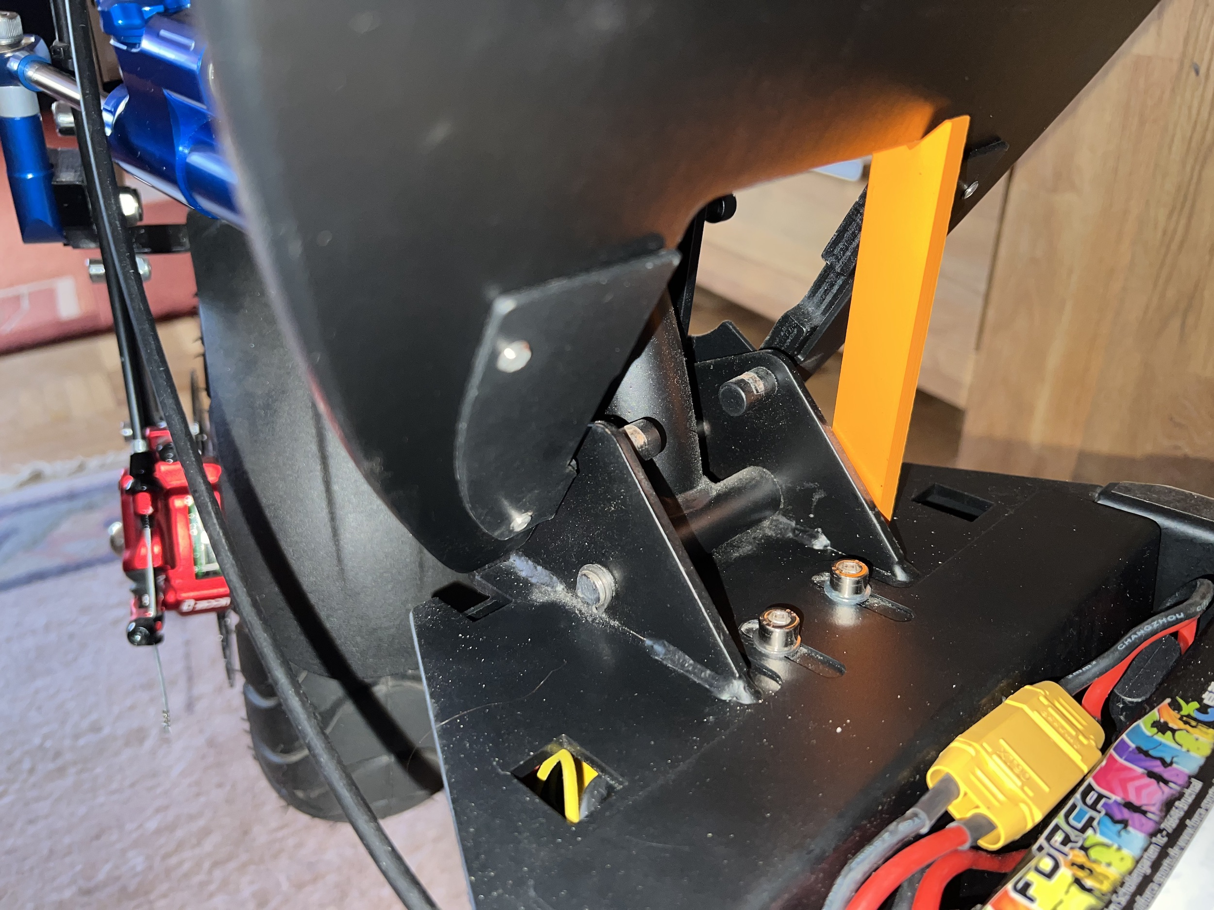 Da der Dämpfer auch nach hinten etwas vorsteht, bleibt das Trittbrett jetzt nicht mehr von alleine offen, da es sich nicht mehr so weit öffnen lässt.