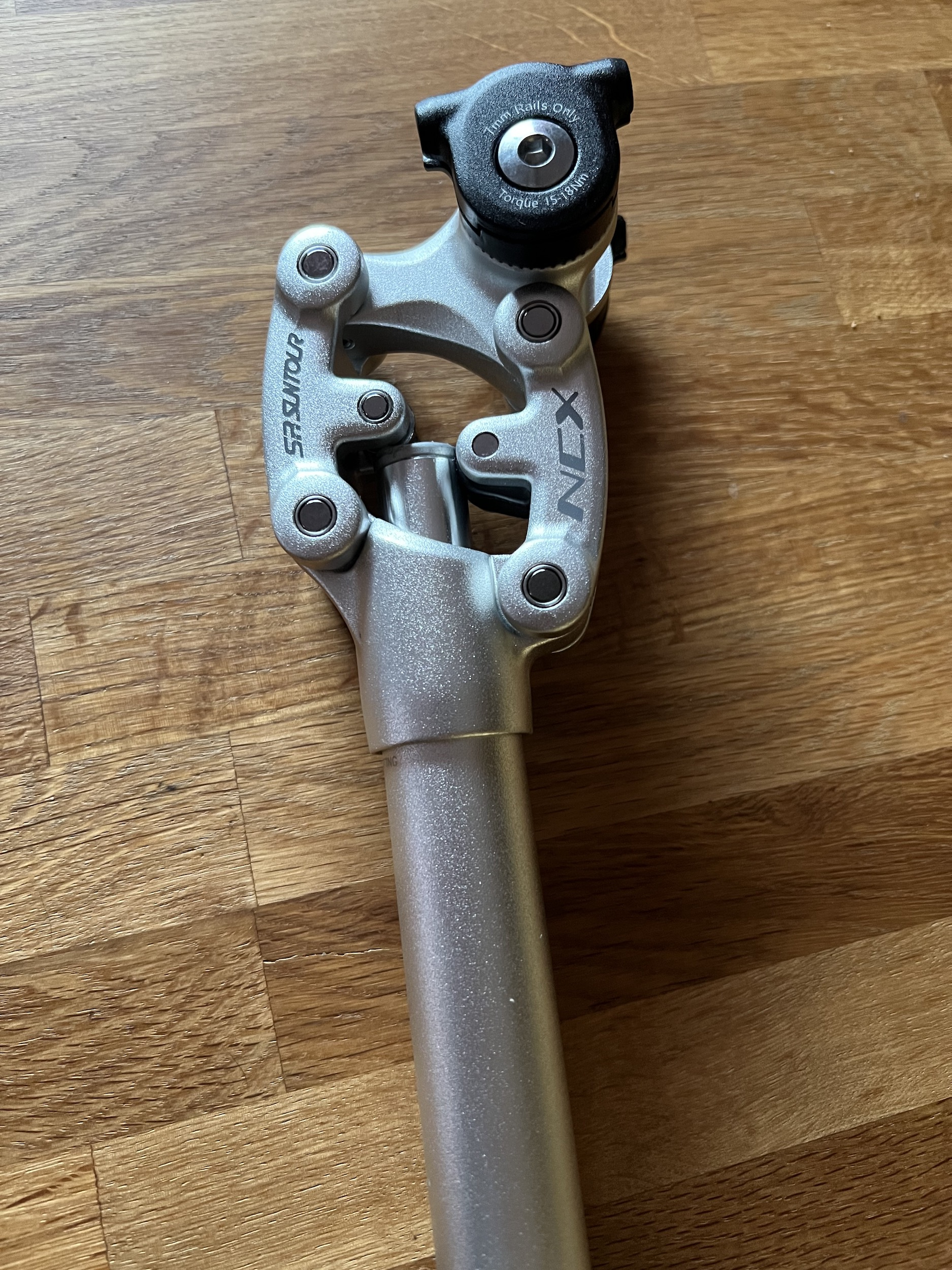 Heute kam auch meine neue gefederte Sattelstütze. Hatte mir anfänglich eine für 22,50 Euro gekauft. So war sie dann auch. Hat gewackelt wie ein Kuhschwanz.