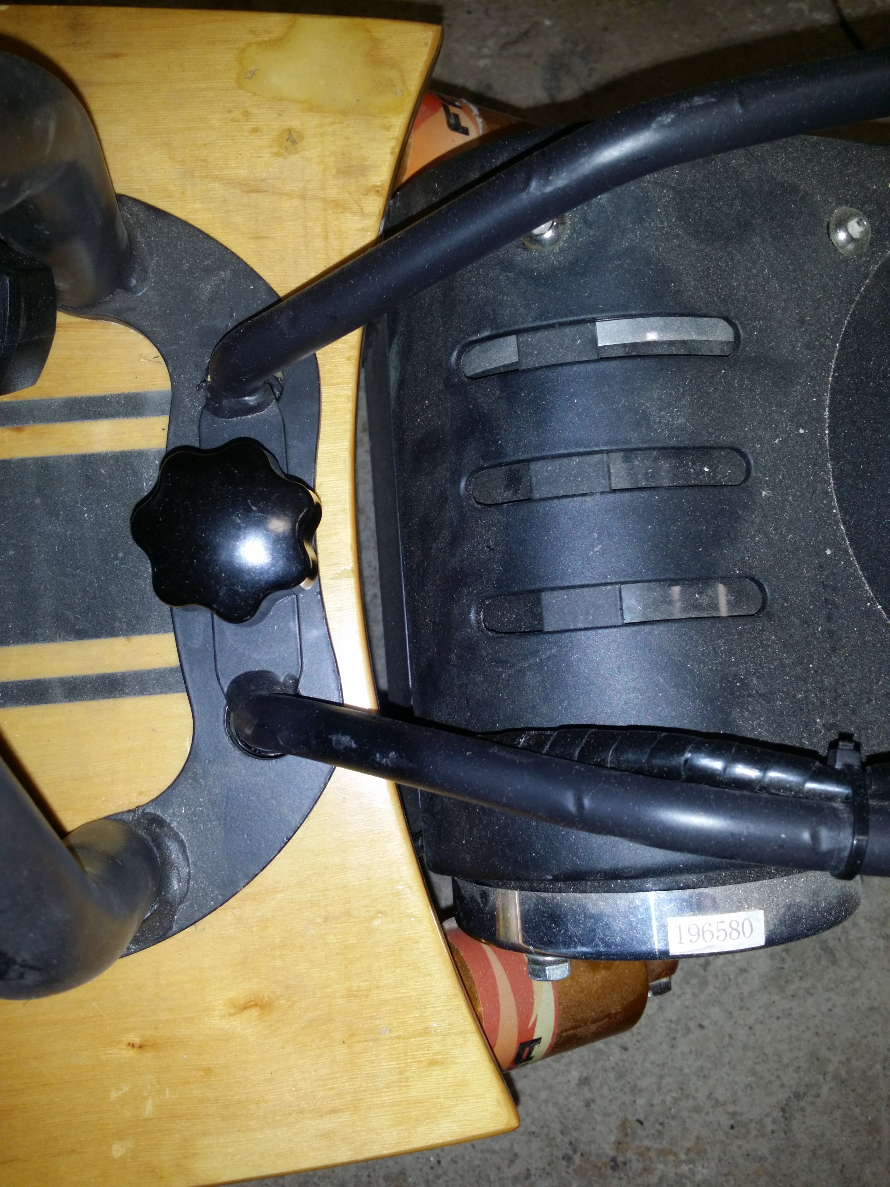Unterm Holz ist das Batteriefach hier etwas ausgeschnitten, so dass die Schlitze des Fußes hier ineinander greifen, wenn die Rändelschraube eingesetzt und festgeschraubt wird.