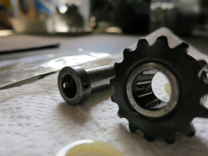 Mir hats die Bohrung durch die Motorwelle vertragen, die fluchtet jetzt nicht ganz und ich konnte die Stahlhülse nur durch ein Loch des Freilaufs und der Motorwelle stecken.