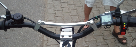 Da bei meinem Scooter noch kein Tacho mitgeliefert wurde ich jedoch noch einen Sigma BC509 zuhause hatte entschloss ich mich diesen zu montieren. Achtung das Kabel der Standarthalterung ist zu kurz für den Roller. Allerdings bietet Sigma eine Universalhalterung an die auch für den BC509 passt und dessen Kabel 150 cm lang ist. Diese passt hervorragend.
