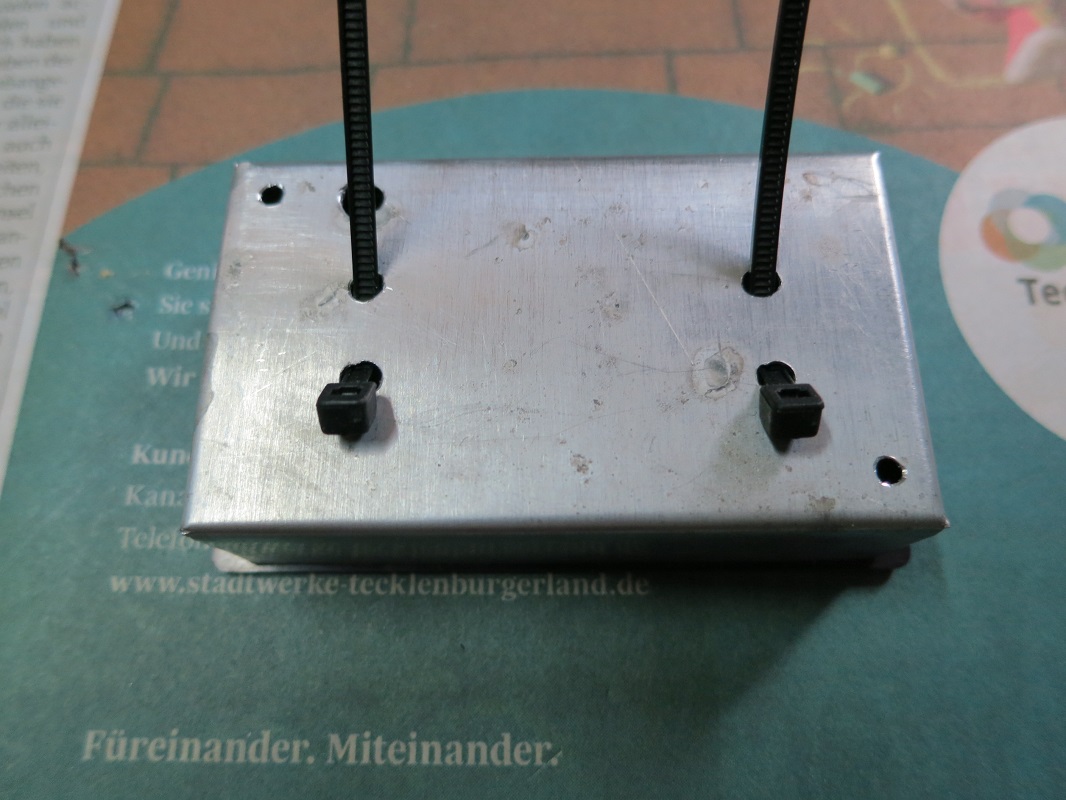 Kabelbinder und Kabel durch die Bohrungen schieben.