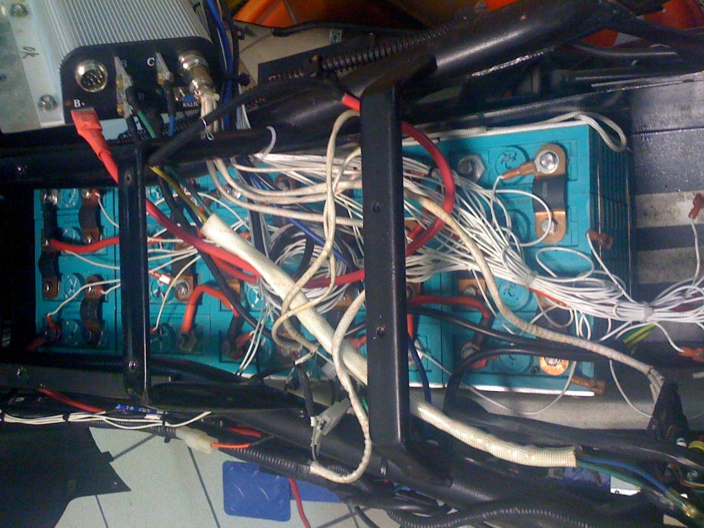 Jawohl, die Zellen haben 100% Vorrang, da mit ABSTAND das teuerste am ganzen Roller! ABER: Zumindest der Kelly kann voll verkabelt bleiben, außer vielleicht den J2-Stecker ausstecken. Das ganze Controllerblech abschrauben und einfach nach links aus dem Rahmen hängen lassen, dann den Lader rausholen und abstöpseln, und Du kommst an alle Zellen. Wenn du sie unbedingt alle rausholen willst (würde ich nicht tun wollen, außer die Zellen wären zu kalt zum Laden...) müssen die vorderen Reihen nach hinten durchgeschoben werden. Das BMS kann auch komplett ausgesteckt werden, die Molex Stecker sind unverwechselbar. Nur aufpassen bei den zwei Kabelschuhen auf dem Relais rechts unten, davon ein Bild machen vor ausstecken und ggf. mit Klebeband die Kabel kennzeichnen.
