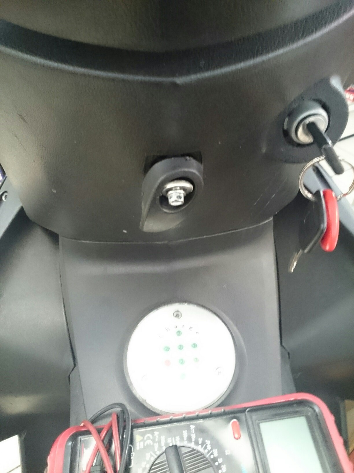 Hannes, das Helmfach muss auch noch weg, dann kannst Du das Blech mit Kelly abschrauben und kommst überall hin.