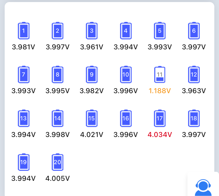 Den Akku kann man auch trainieren. Ist String 11 bei hoher Belastung abgesackt. Für so einen Fall habe ich mein BMS auf maximal = 255 sec Verzögerung programmiert, dann gehts schon wieder bergab.