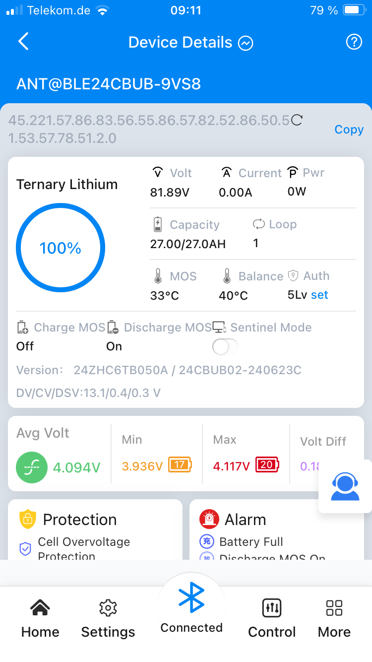 Was ich noch wissen sollte, was muss ich beim ANT-BMS einstellen, zur Auswahl hab ich nur Iron Phosphate, Ternary, titanite lithium, Sodium -Parameters Ich hab keine Ahnung welchen Typ Zelle ich bekommen habe. Auch bei der nachgekauften Zelle steht nur Chemistry: Li-ion drauf.