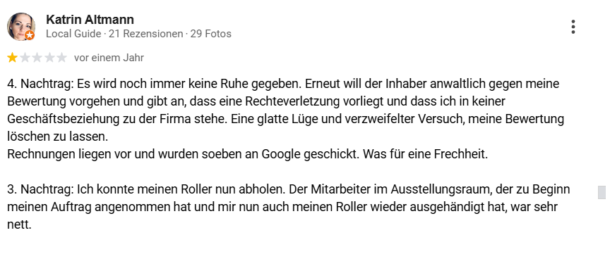 Wer Google Rezessionen als Bewertungsindex glaubt, hat auch der Person mit dem ähnlichen Namen vor dem April geglaubt