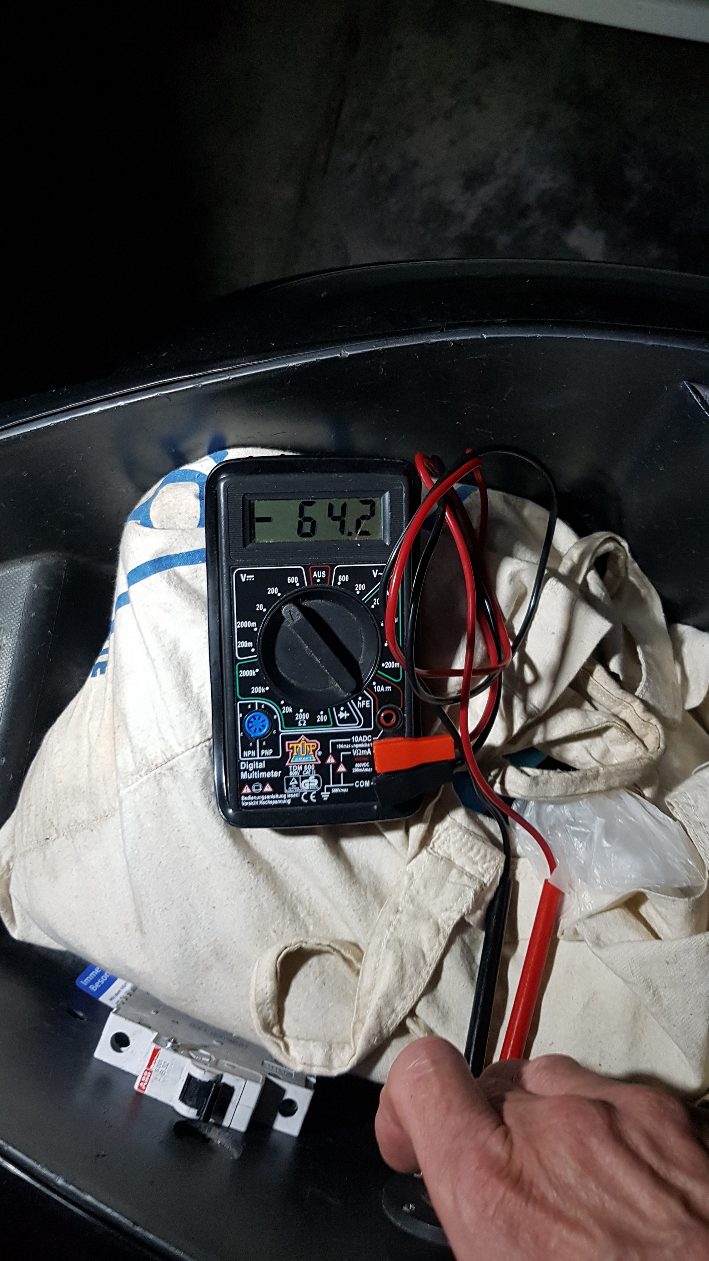 Was ich eben noch gemessen habe war das + aus der Ladebuchse und Masse an der Schraube links vom Messgerät 6,2V beträgt.