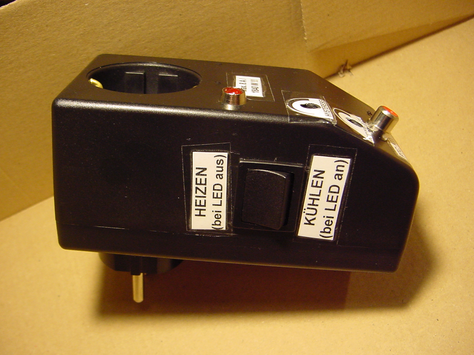 Oben drauf steht der silberne Inverter 13,5V=/230V~, in den auf diesem Bild gerade nichts steckt.
