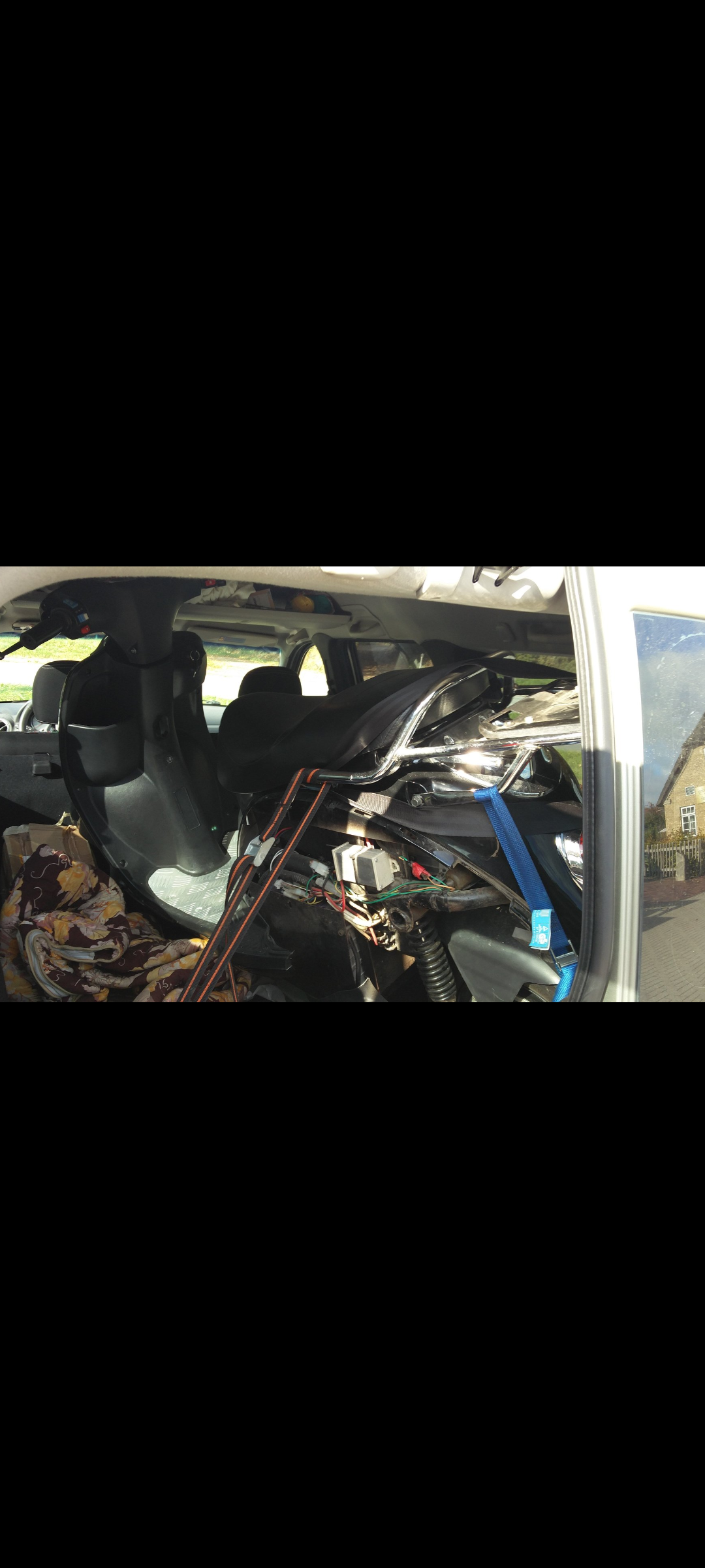 Das ist mein Motoradträger. Aber das gefällt mir nicht so richtig. leider haben die ganzen neunen Caddys zu wenig Leistung und ein Tarnsporter ist zu Hoch für meine Garage deshalb bleibt das erst mal bei dem Träger.