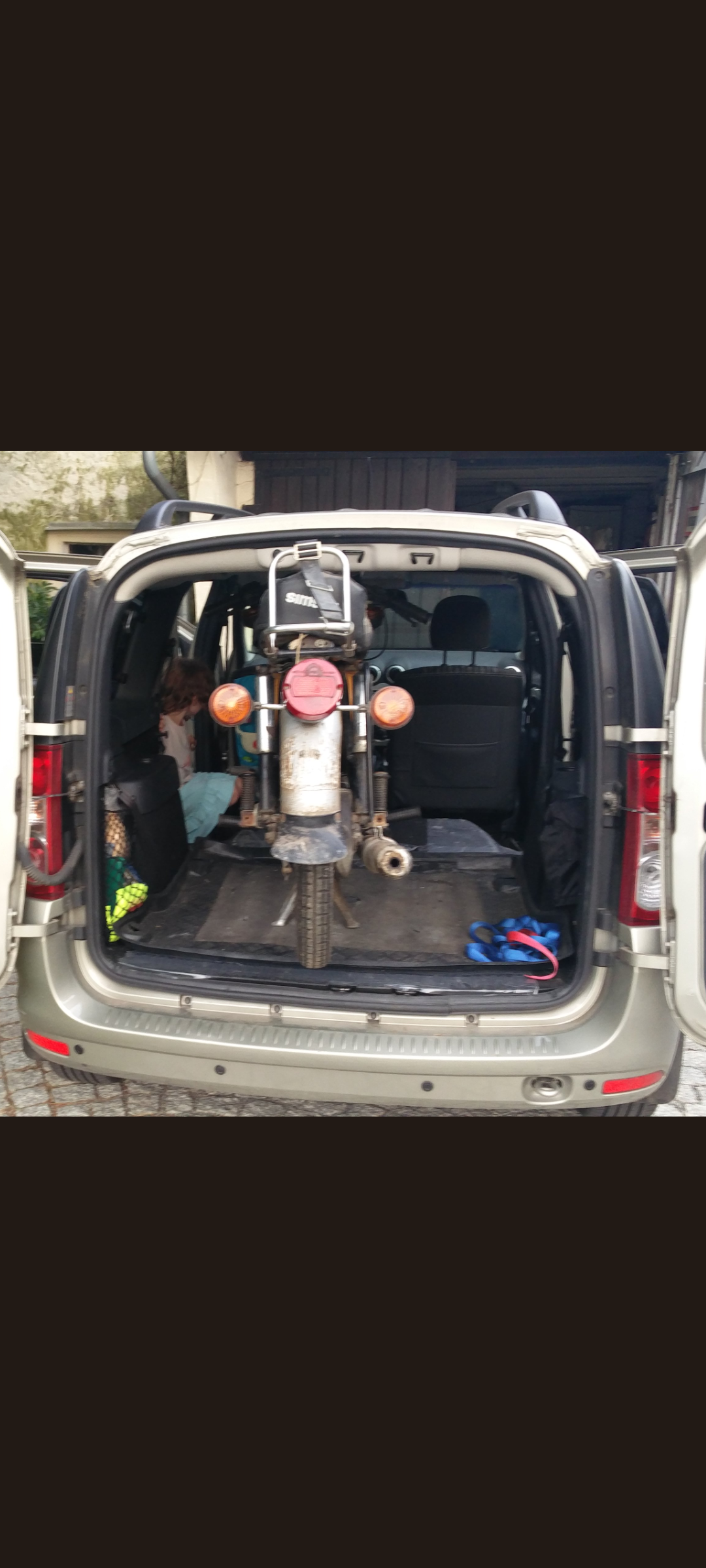 Bei mir haben alle 4 Roller die ersten Kilometer im Kofferraum zugebracht, Spiegel, Schild und Topcase ab und Abfahrt. Bei der Simson ging das auch so
