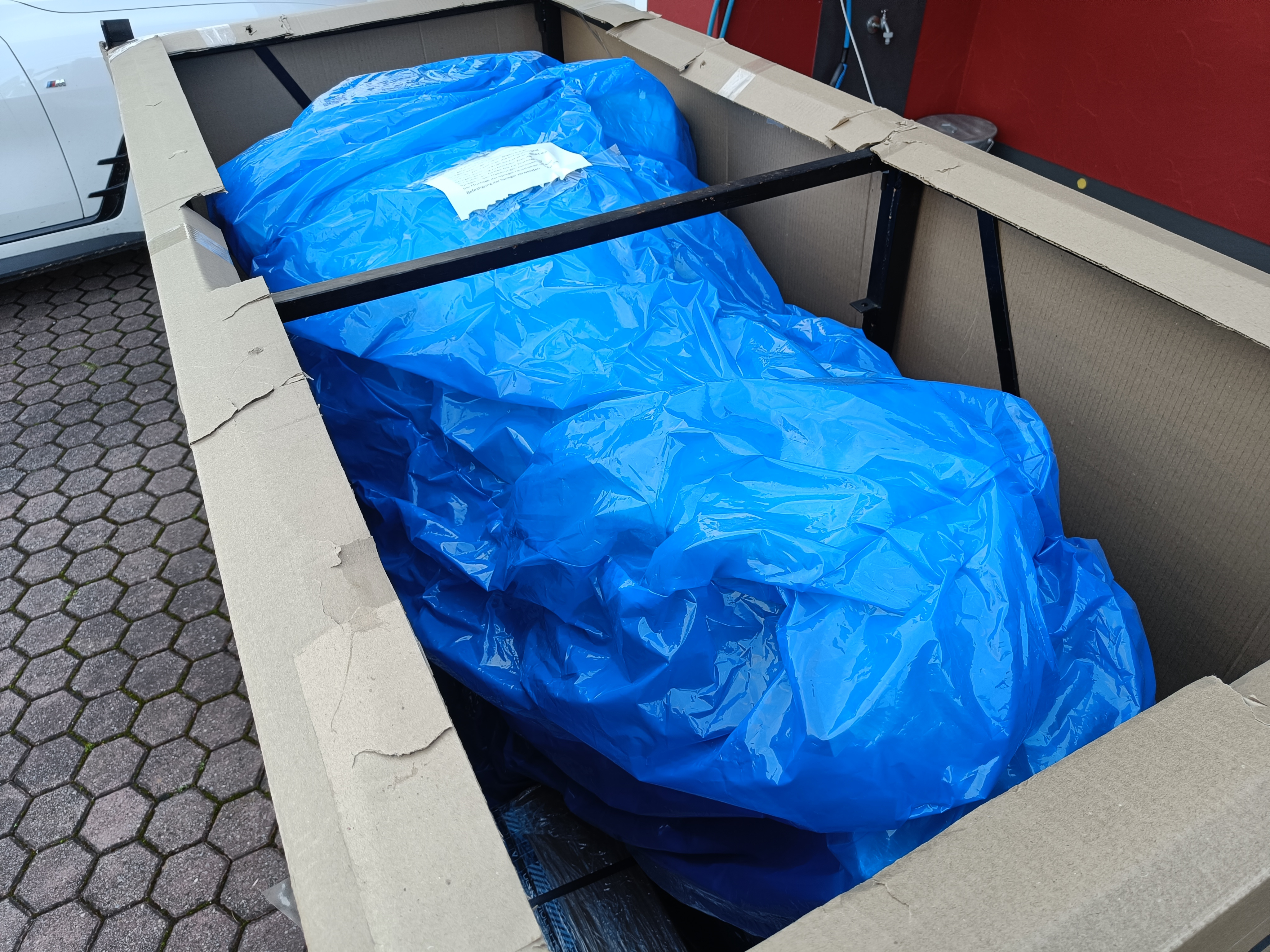 So, es geht los. Sie wurde gestern mit der Spedition angeliefert. Ich muss mich mit meiner Euphorie etwas zurückhalten. Ich bin noch keinen Meter damit gefahren, da ich morgen erst einen Termin bei der Zulassung hab.