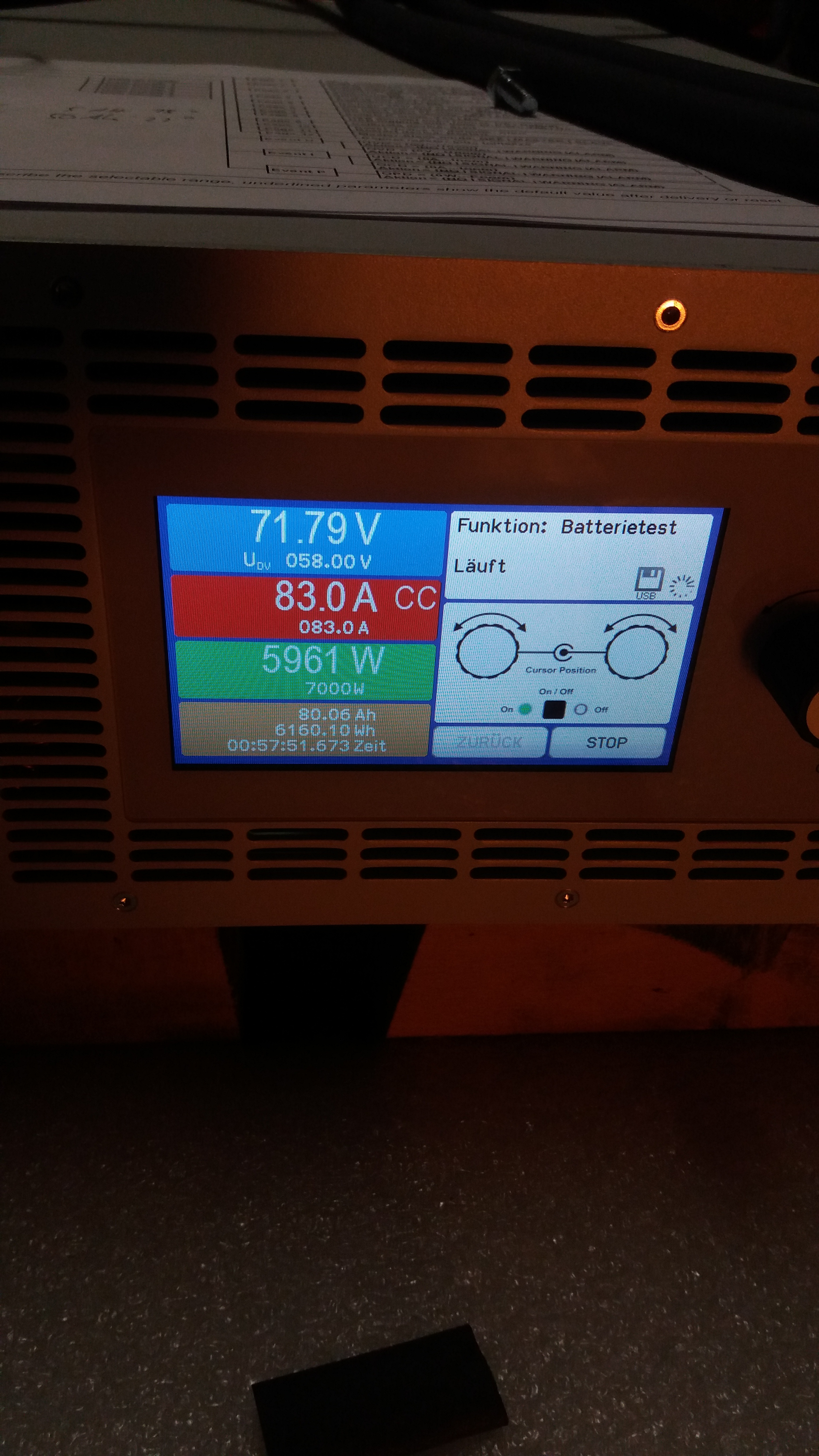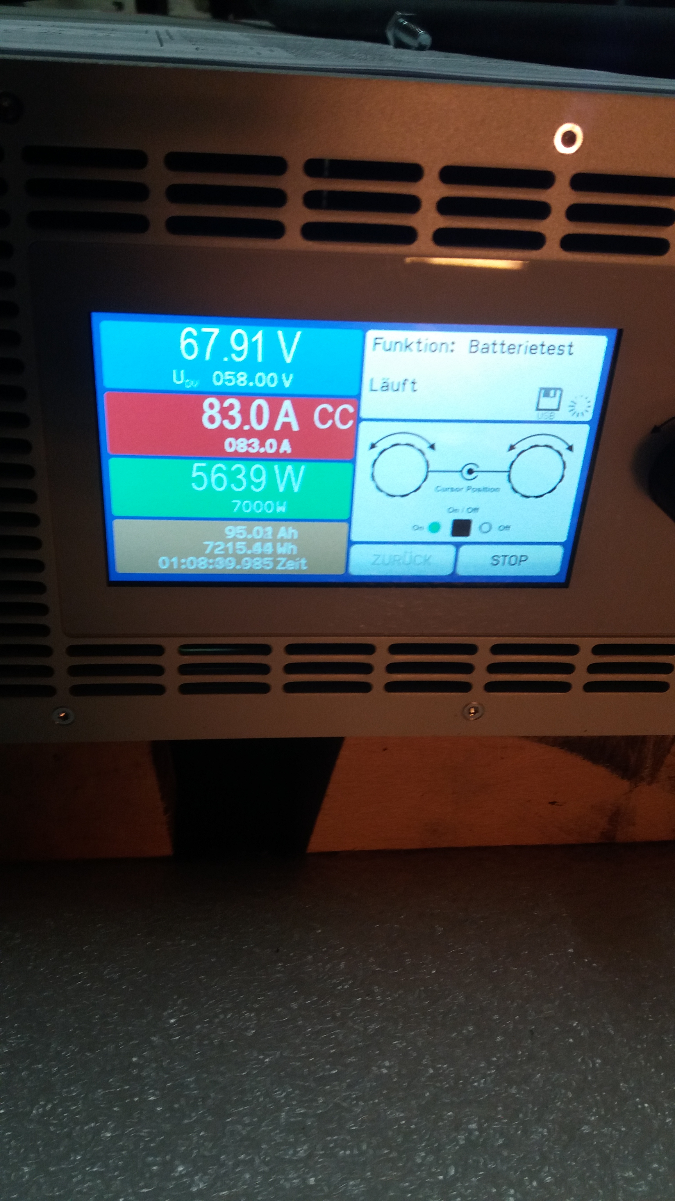 Zudem werde ich noch einen Voll-Zyklus mit 6-7kW Entladeleistung an einer Elektronischen Last und anschließendem Laden mit 2,5kW Ladeleistung machen, damit ich weiß was der Akku wirklich kann und das BMS danach auch auf den "richtigen" Kapazitätswert einstellen kann.