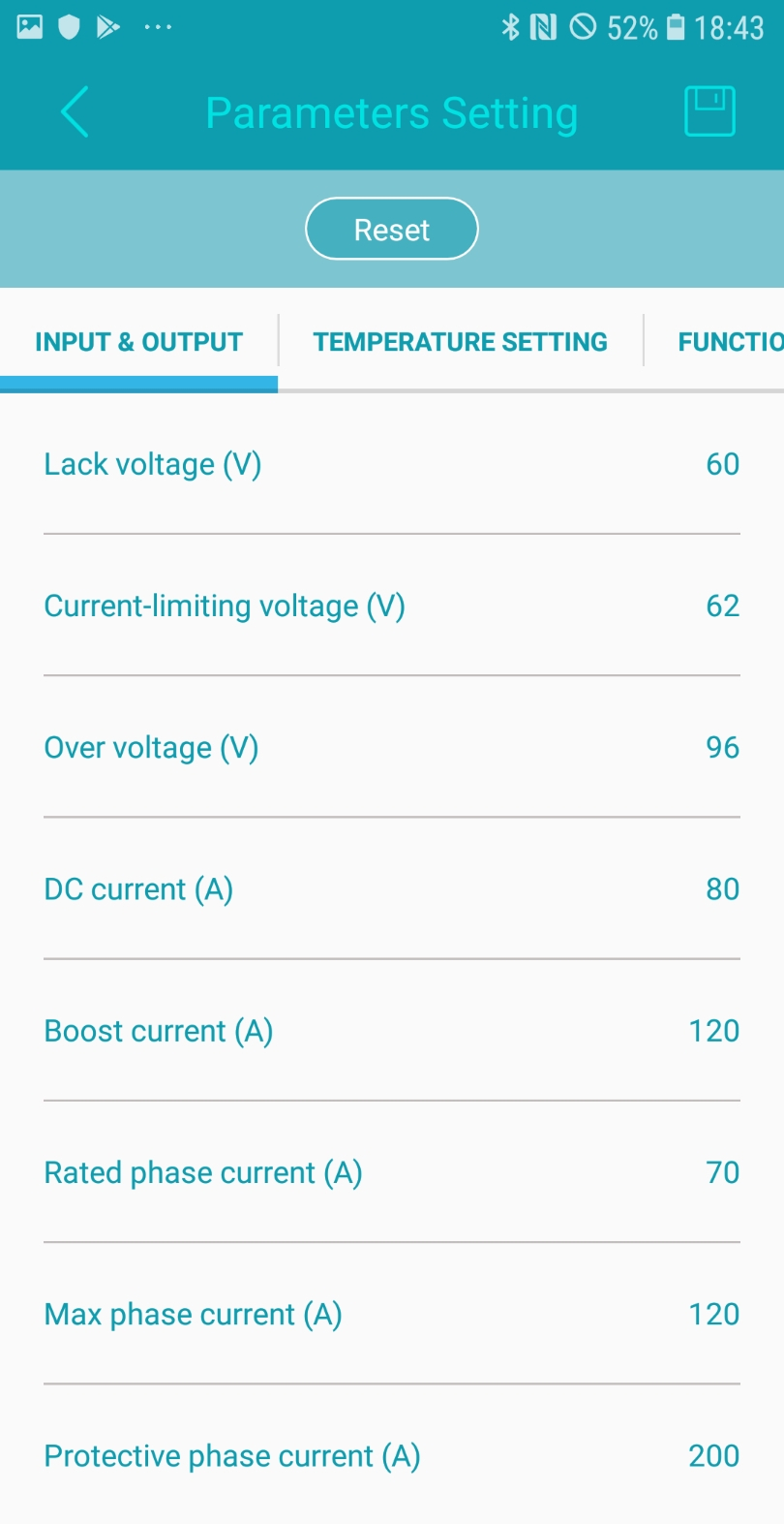 Nun, ich denke ab current limiting voltage (V) fährt der Controller an einer Spannungsgrenze. Z.B. Bei eingestellten 66V und aktuellen 100A von 100A in Richtung 20A und dann bis lack voltage (V).
