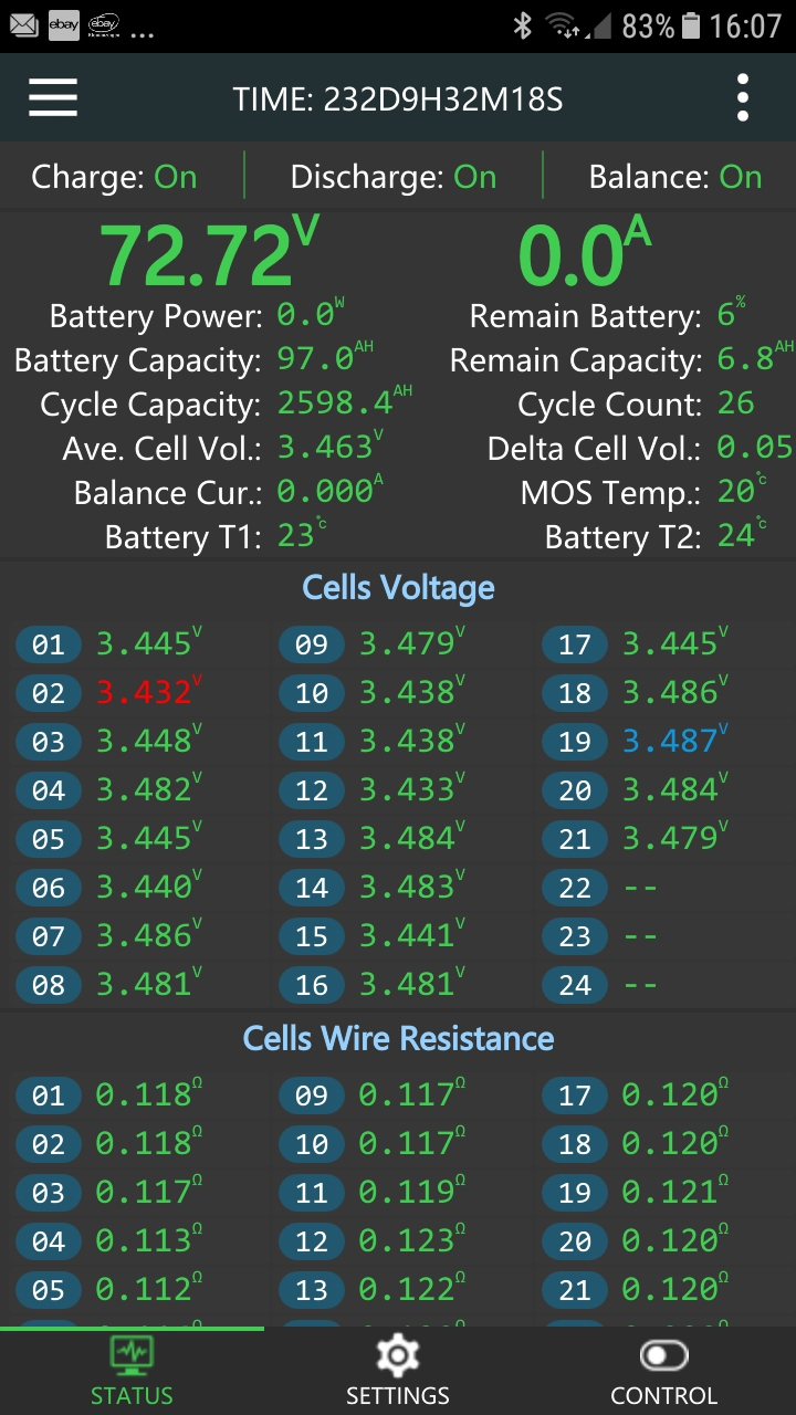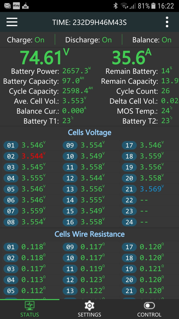Bin mit 87,4V gestartet und mit 22Grad im Akku.