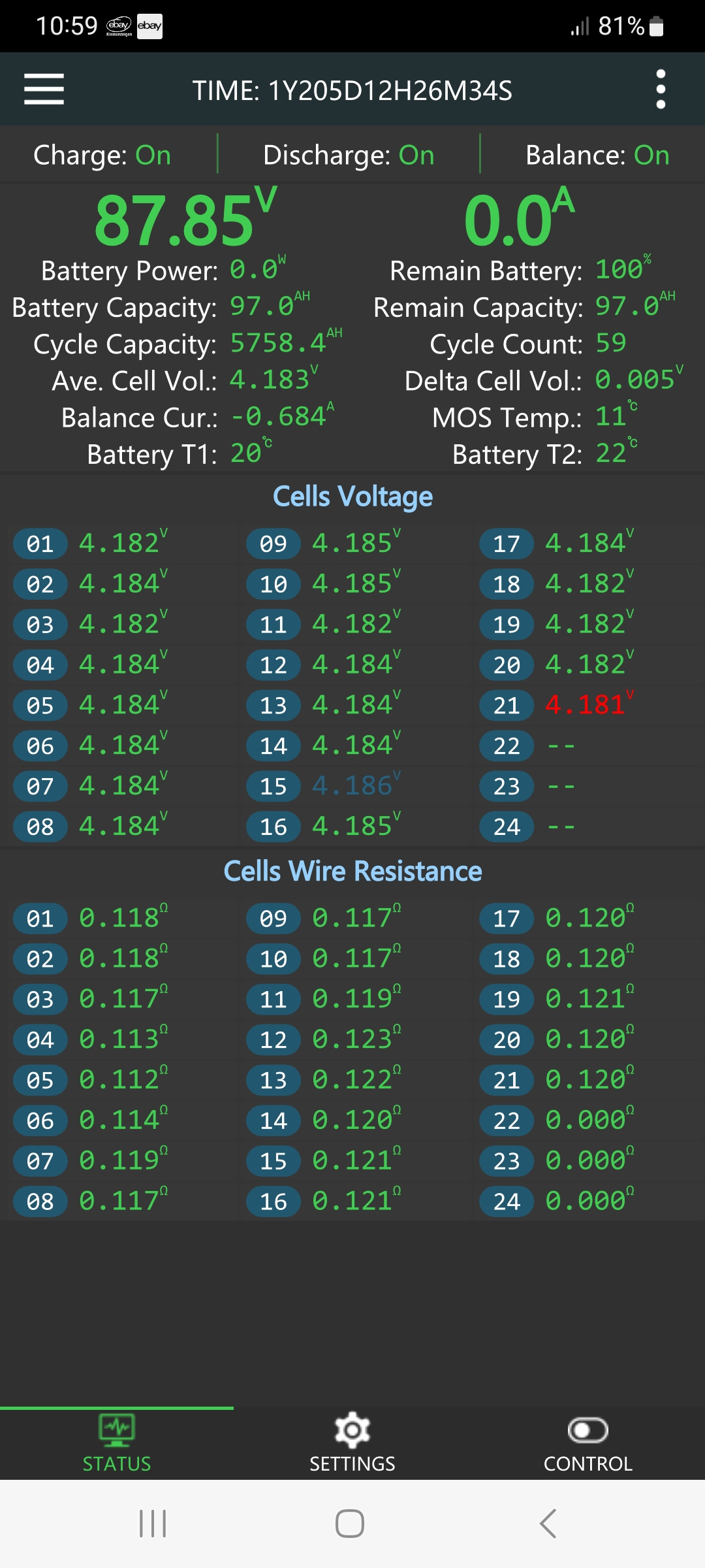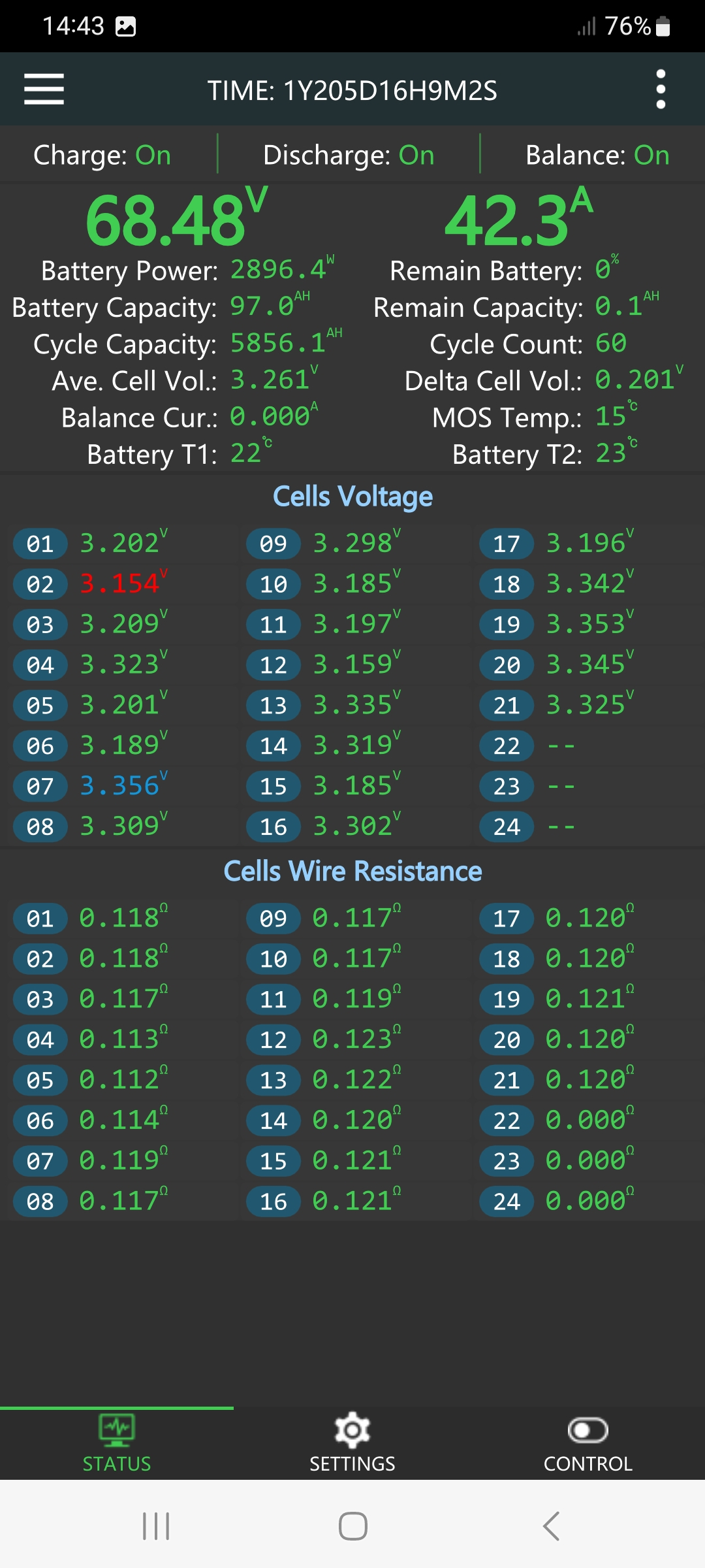 Auf den letzten Autobahnkilometern vor zu Hause sank die Spannung auf unter 72V und der Roller fiel unter die bei LKW üblichen 86km/h laut GPS. Die Zelldifferenz lag bei 10Ah Rest noch unter 40mV.