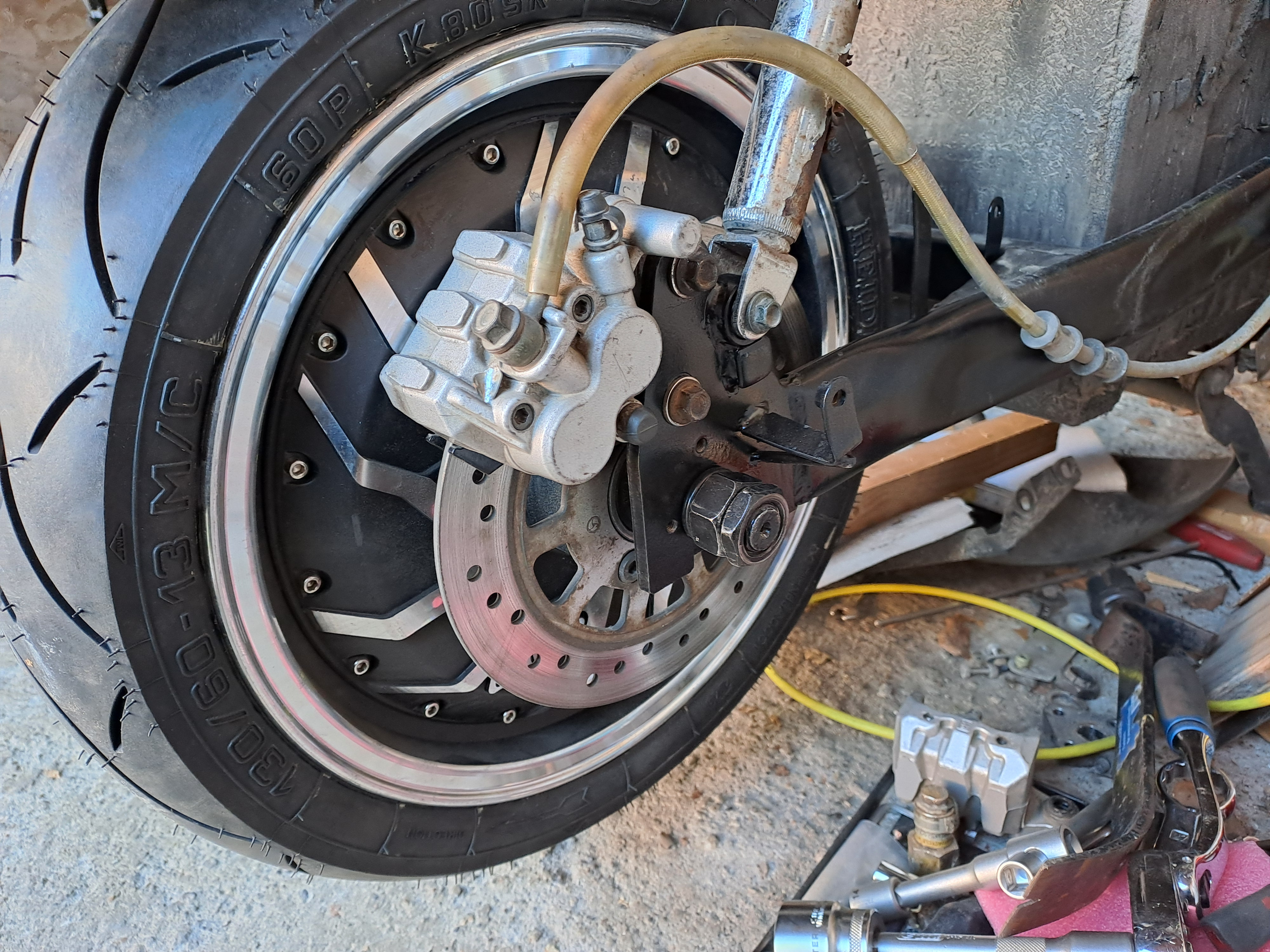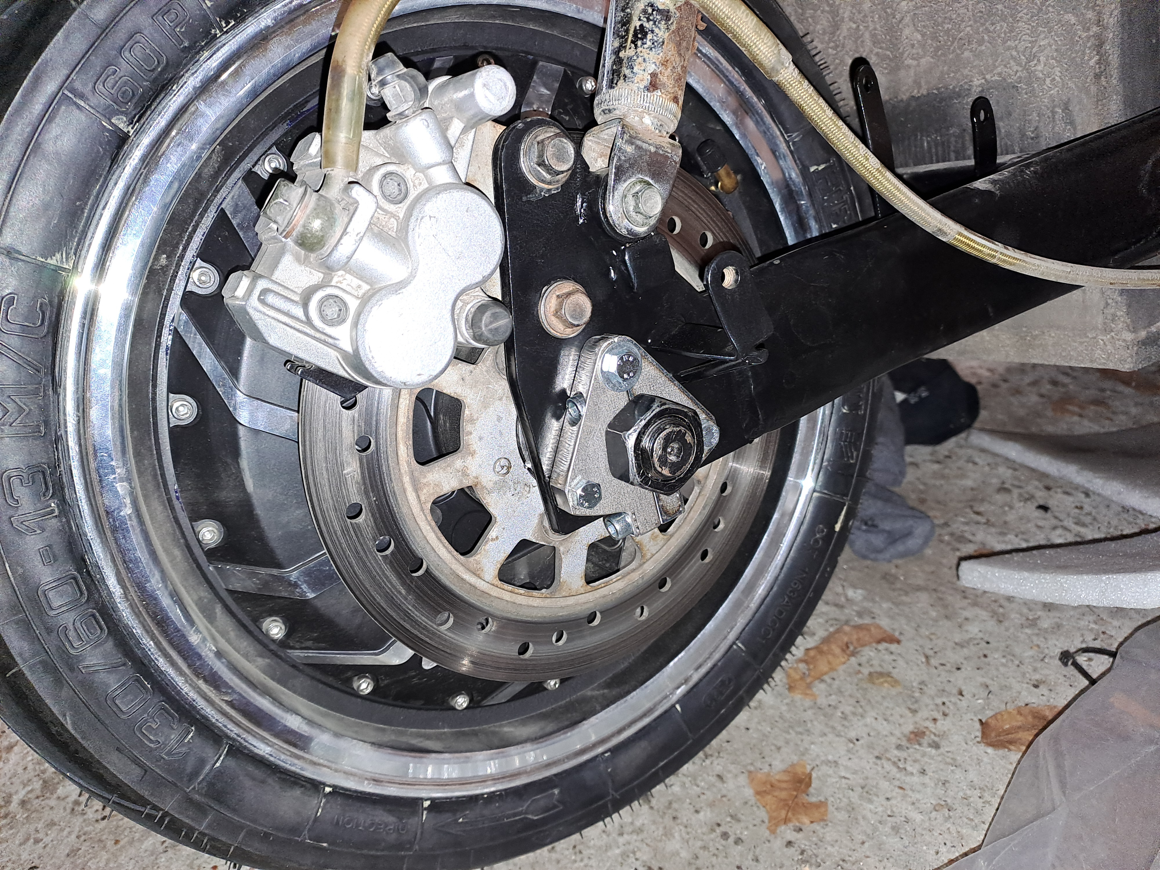 Nach oben kann und will ich nicht mehr, nach unten ist genügend Platz.error hat geschrieben: ↑Di 23. Jan 2024, 01:37Hoffentlich gibt das deine Schwinge überhaupt her. Kannst du aufgrund der Bremssattelbefestigung den Schlitz der Achsaufnahme noch 1-2mm nach oben setzen ohne dass die Bremsscheibe am/im Sattel schleift? Wenn du den Schlitz von der Tiefe so belassen hast, müsste die Scheibe durch den größeren Achsdurchmesser geringfügig tiefer sitzen.