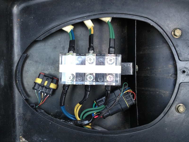 Ein Klemmenkasten für die einfachere Entfernung des Hinterrades beim Reifenwechsel sollte beim Extremo schon eingebaut sein, vermutlich unter dem kuppelförmigen Deckel unten im Helmfach. Dort sollten die 3 Motorpahsen sowie 5 bis 10 Drähte für die Hallensoren durchlaufen, oder aber letztere haben eigene Stecker. Da gern mal ein Hallsensor den Geist aufgibt sind gleich zwei Sätze davon eingebaut. Ich musste nach etwa 6000km schon auf den zweiten Satz wechseln...